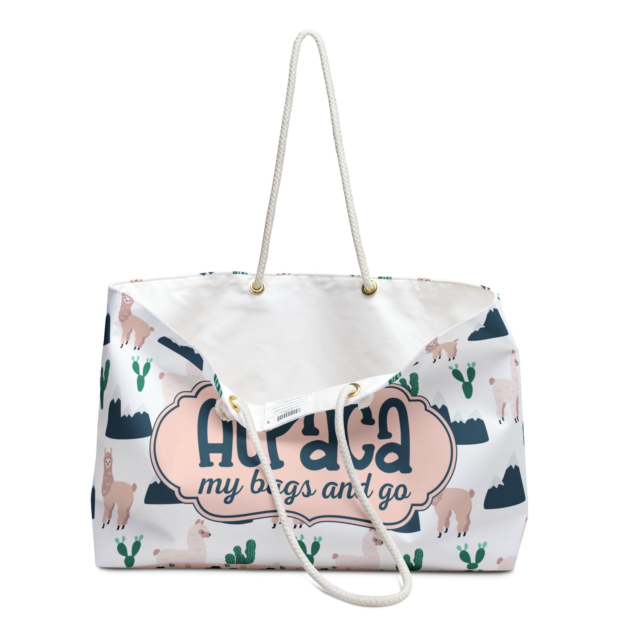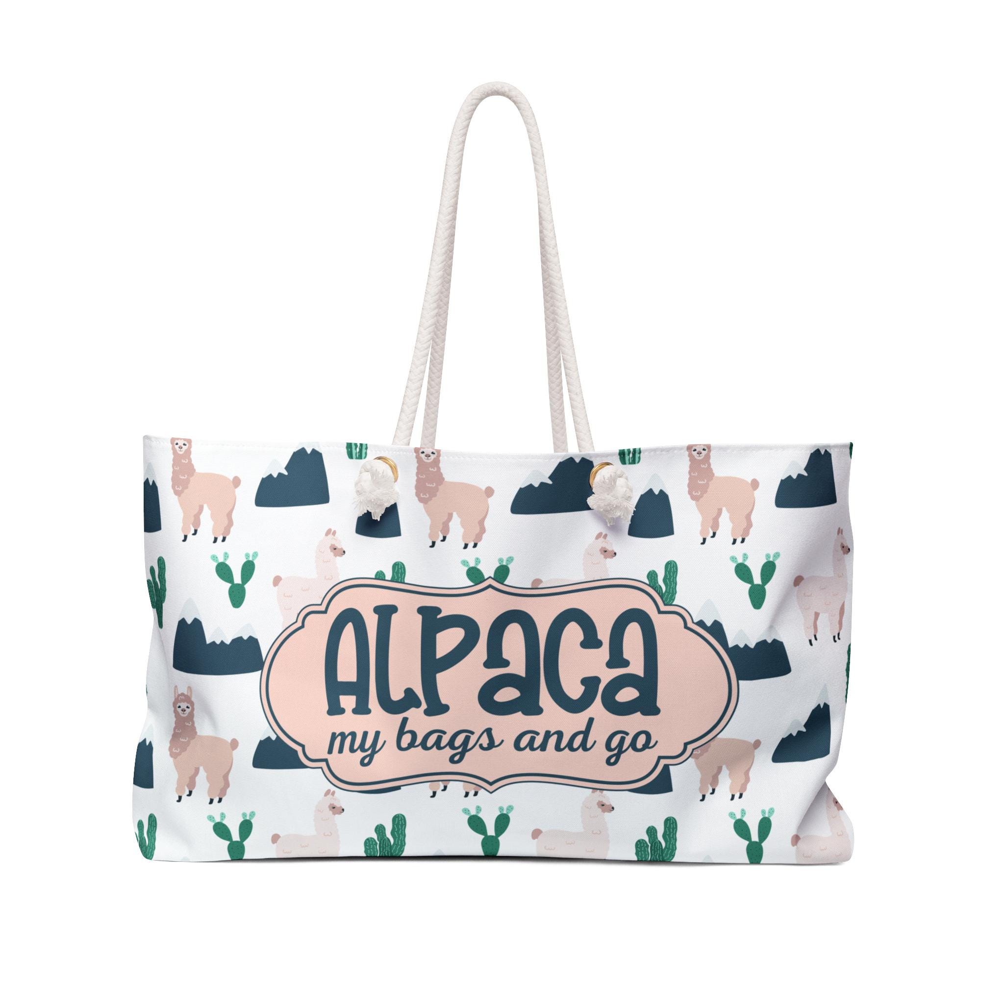 This alpaca travel tote bag is a funny weekender and cute carryall for animal lovers. With its playful “Alpaca my bags and go” design, it works as an overnight tote, quirky vacation bag, or holiday getaway carryall. Perfect as a gift for mom, a gift for kids, or a unique travel gift, this roomy tote blends humor and function. Use it for Mother’s Day, birthdays, or Christmas holidays — this alpaca bag is practical, stylish, and sure to get smiles wherever it goes.