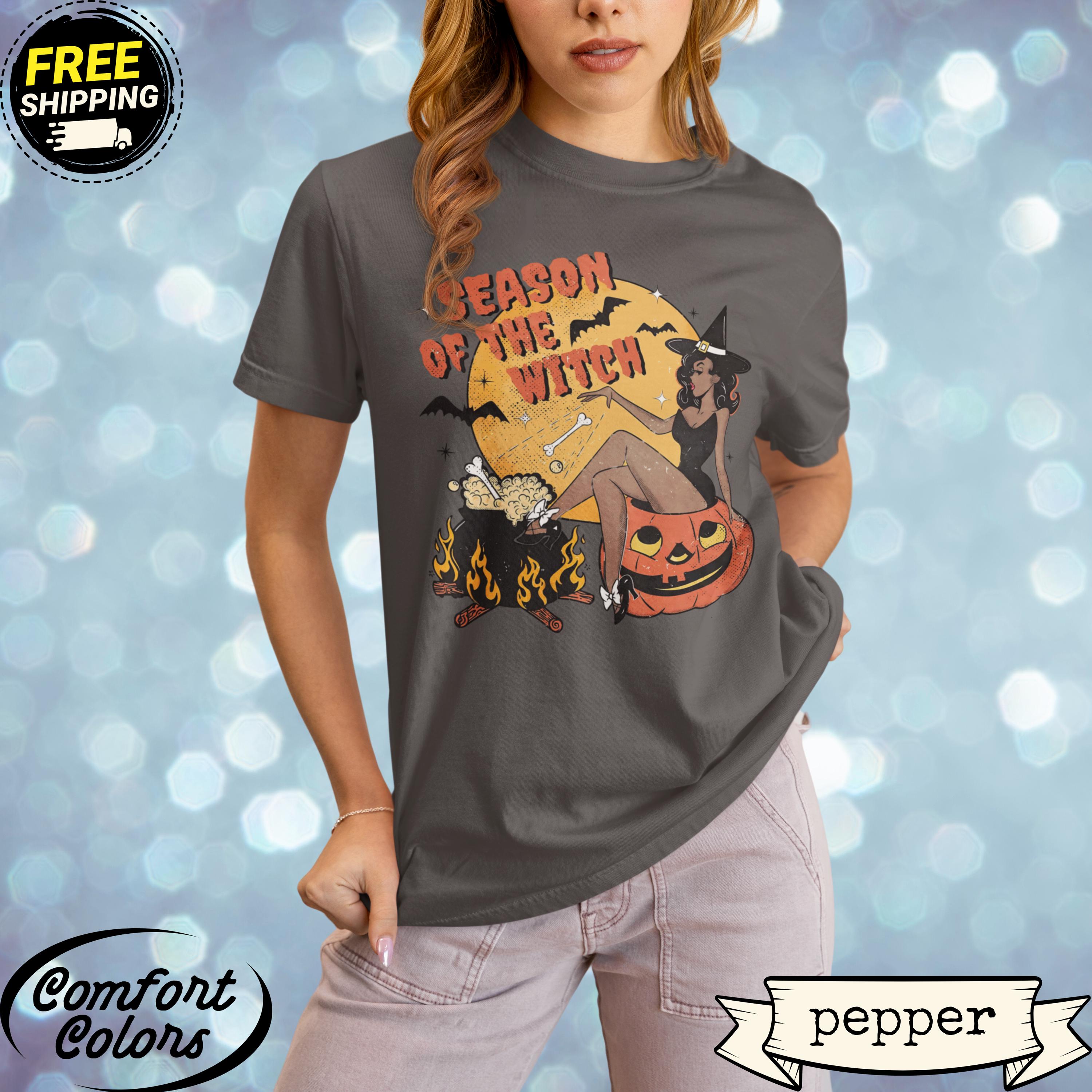 Season Of The Witch Retro Halloween Shirt | Ebony Witch