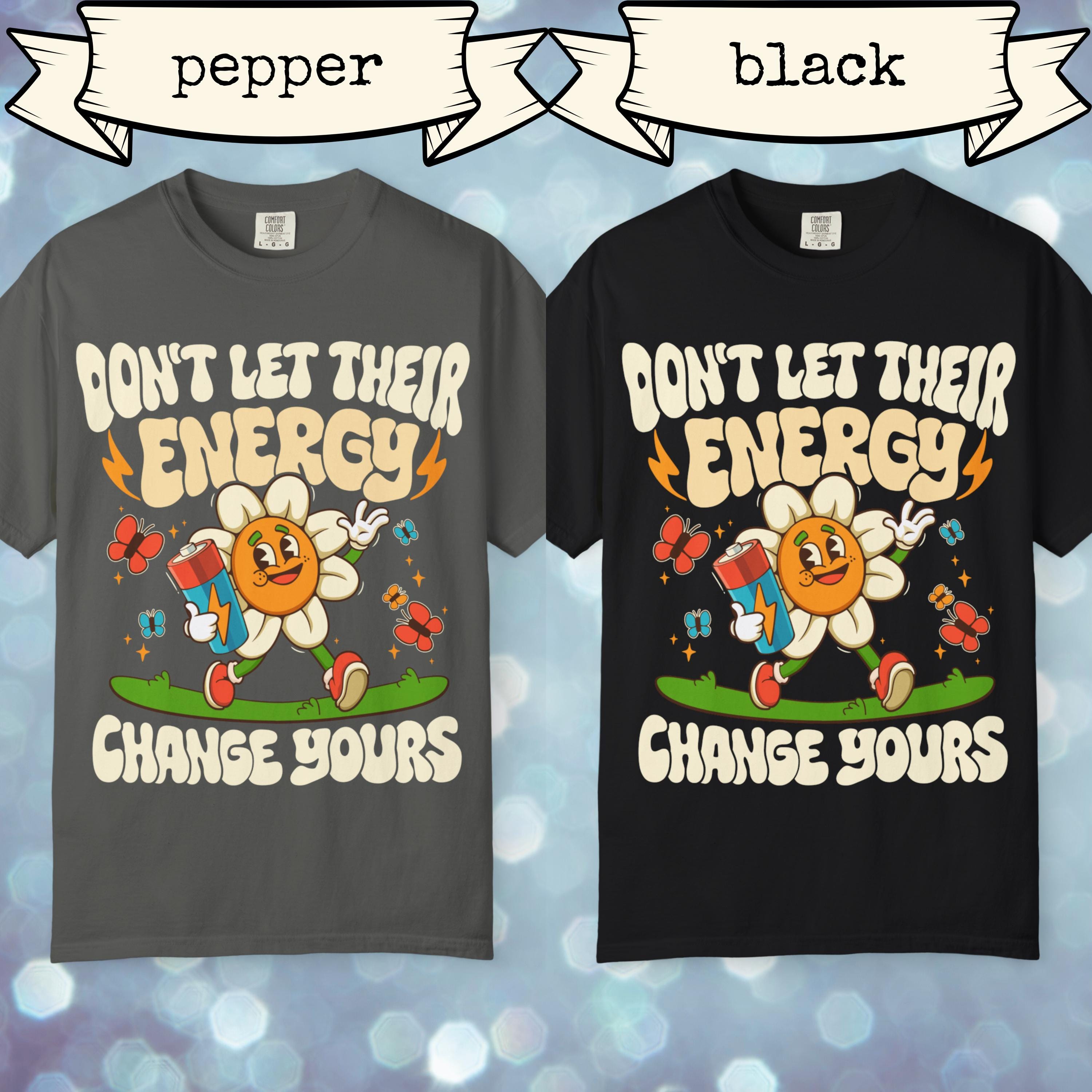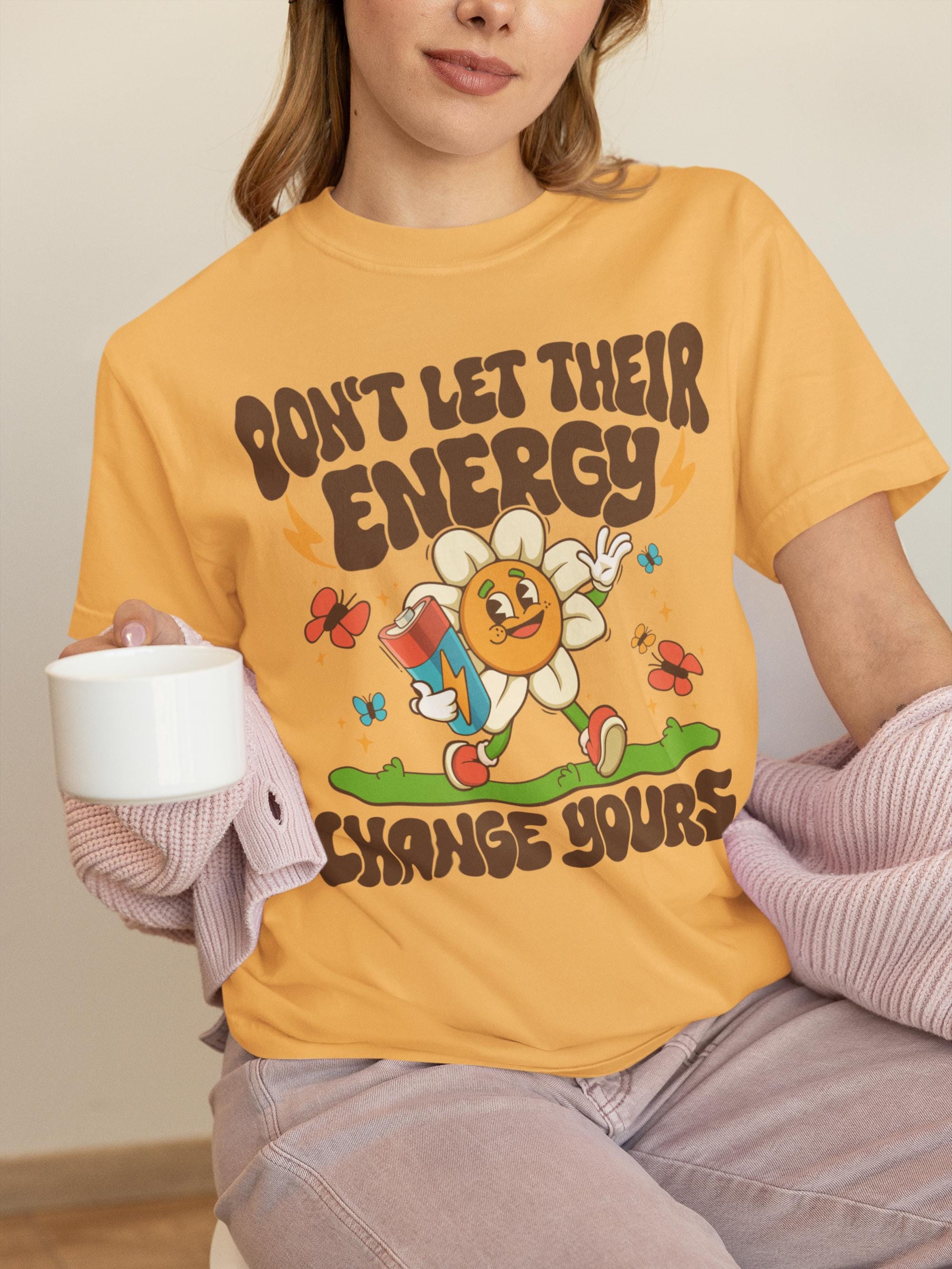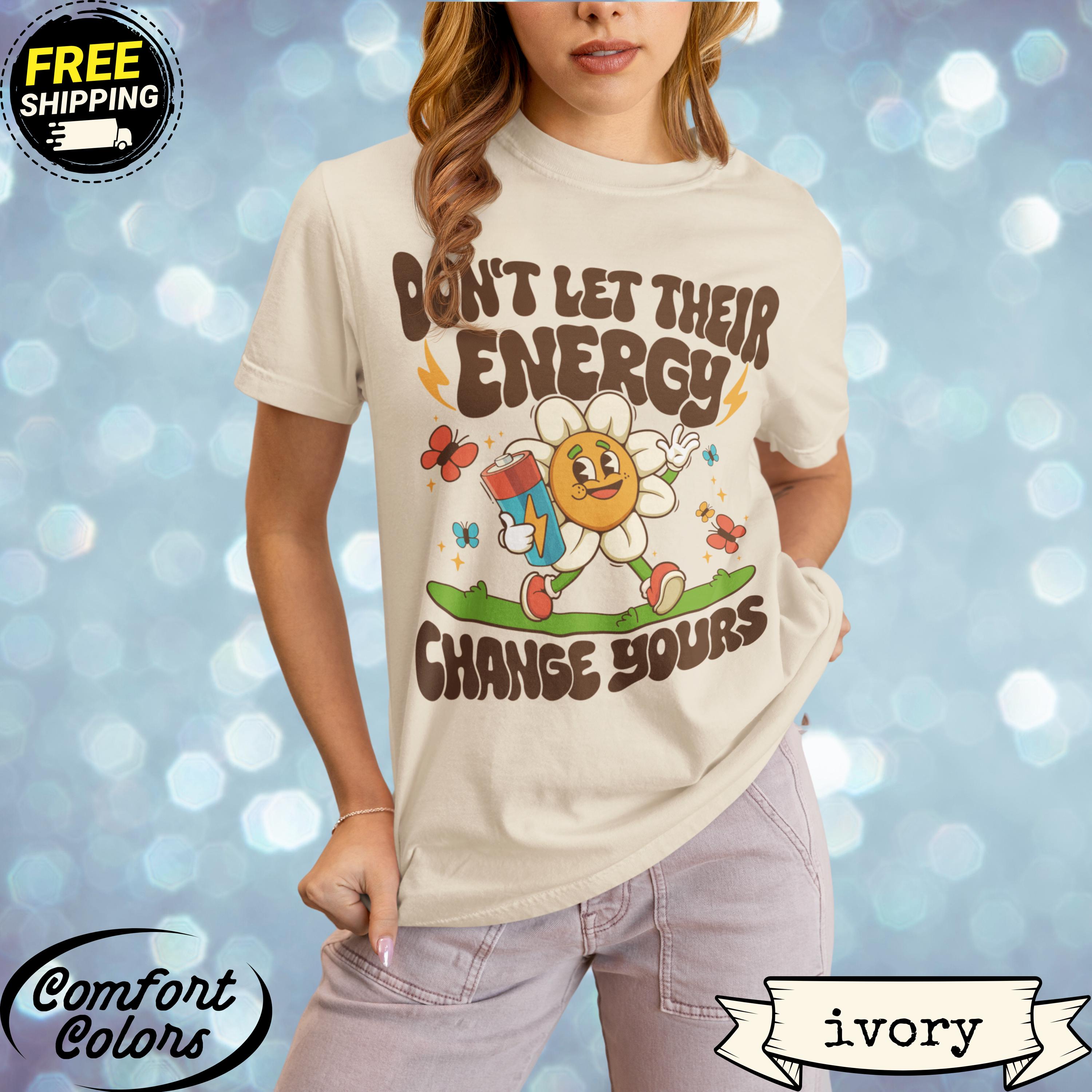 Spread good vibes in this groovy retro flower tee with a powerful message: Donβt let their energy change yours. Perfect for 70s lovers and positive souls.