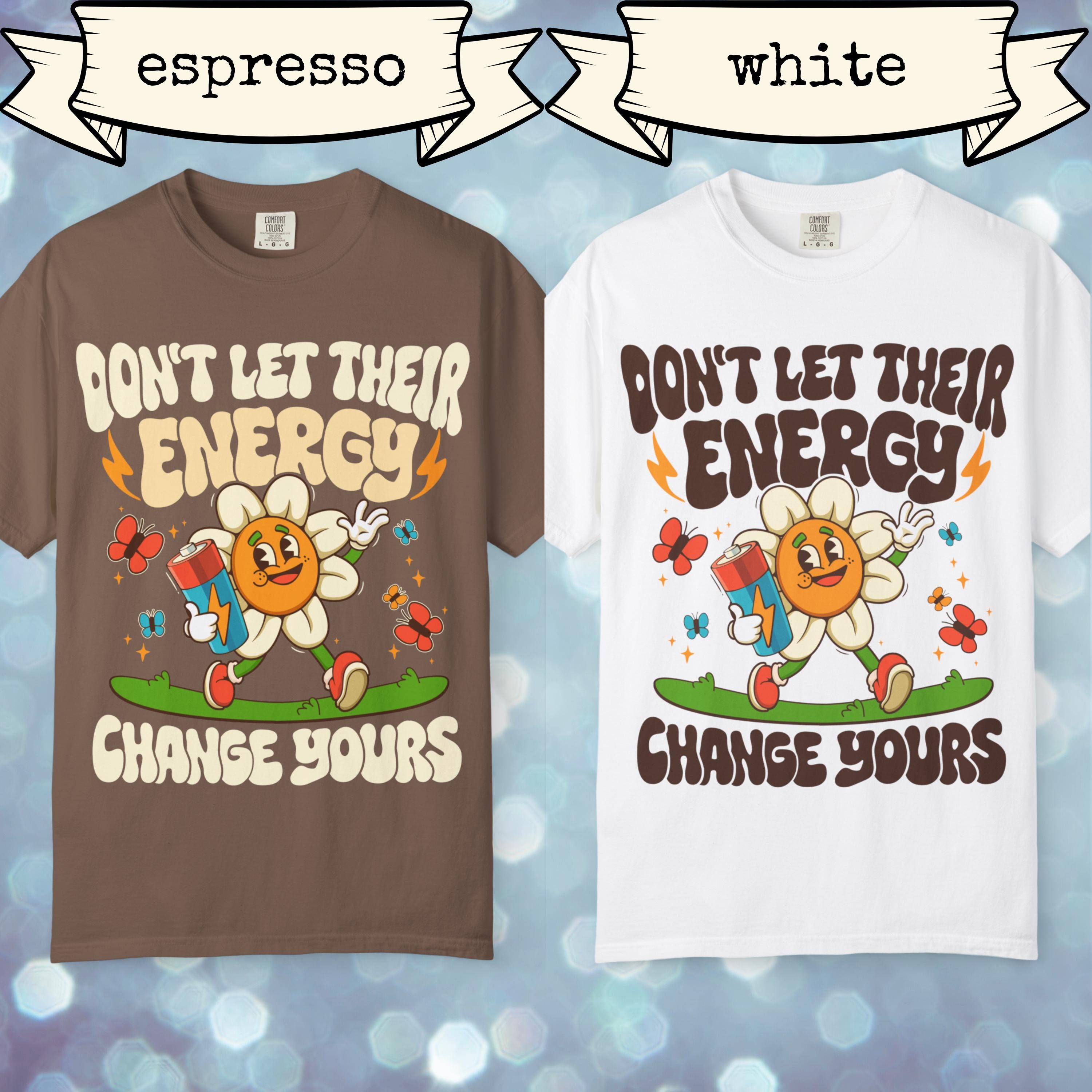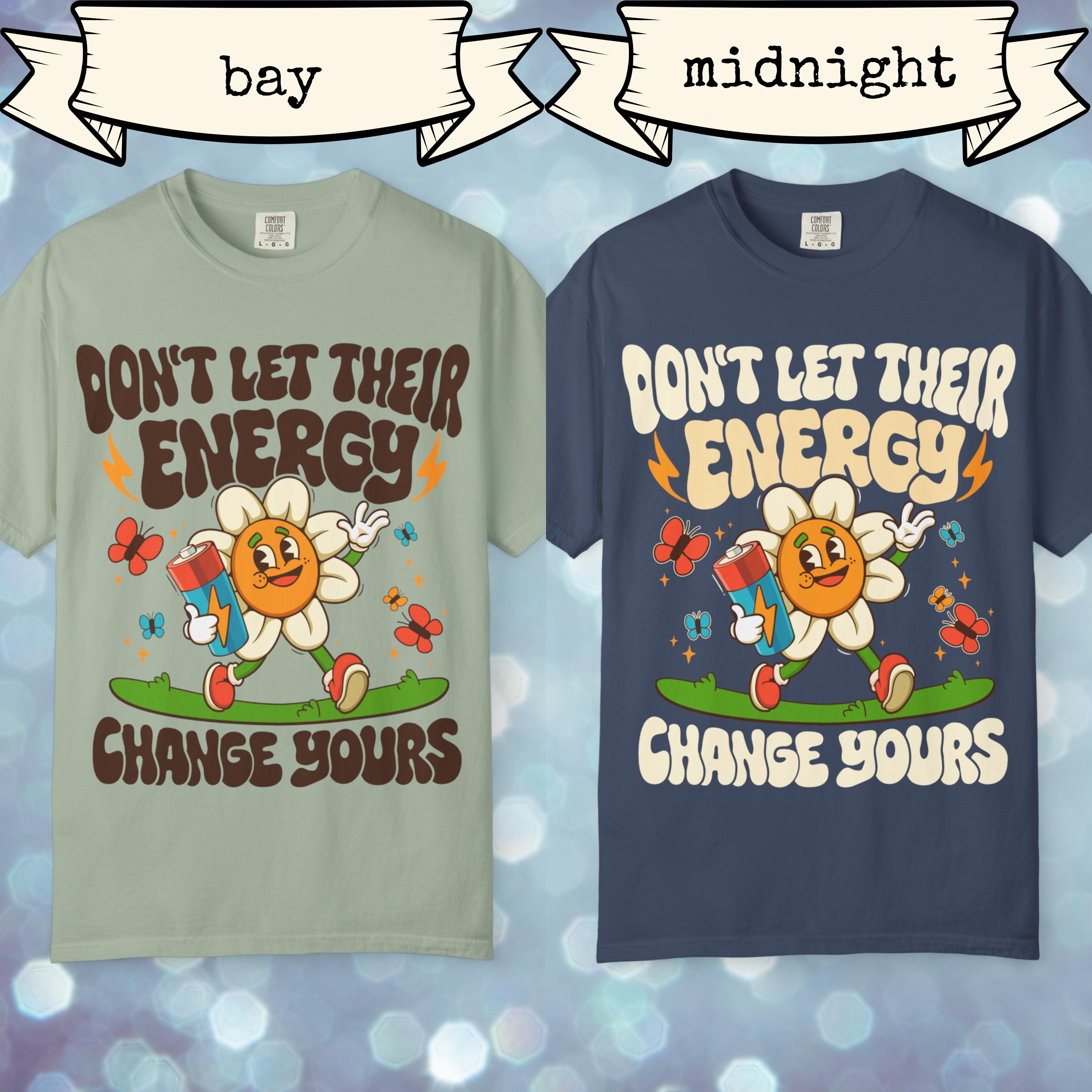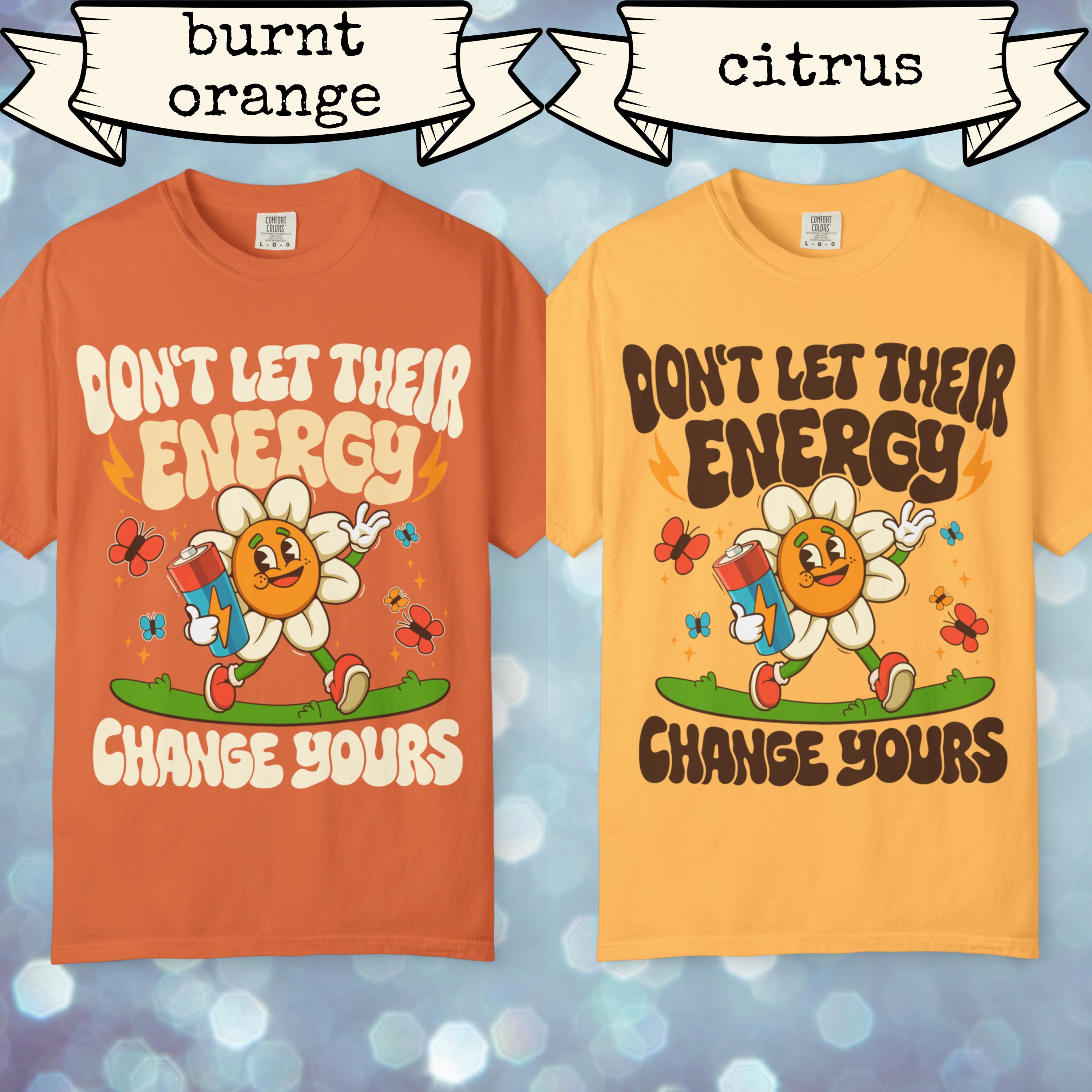 Spread good vibes in this groovy retro flower tee with a powerful message: Donβt let their energy change yours. Perfect for 70s lovers and positive souls.