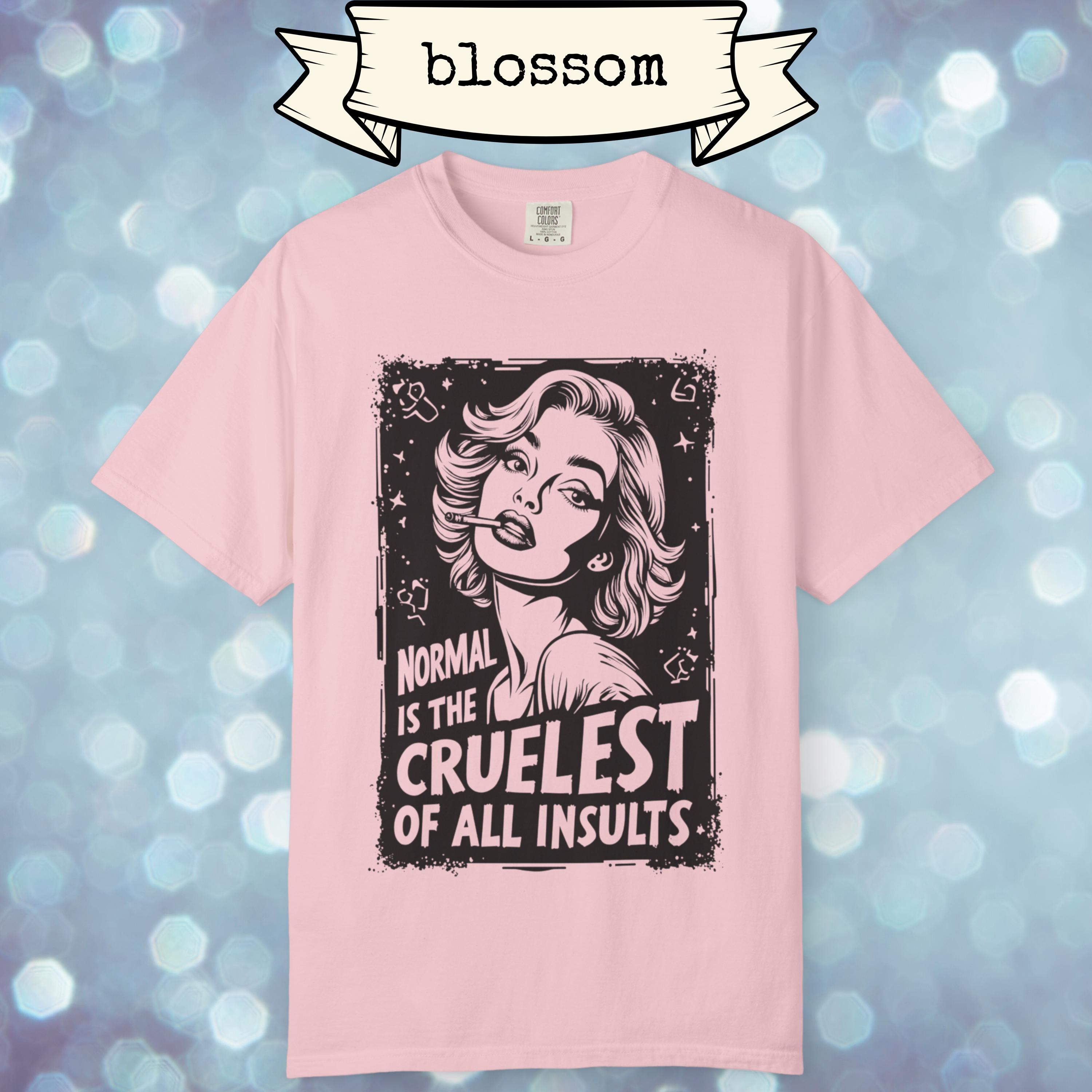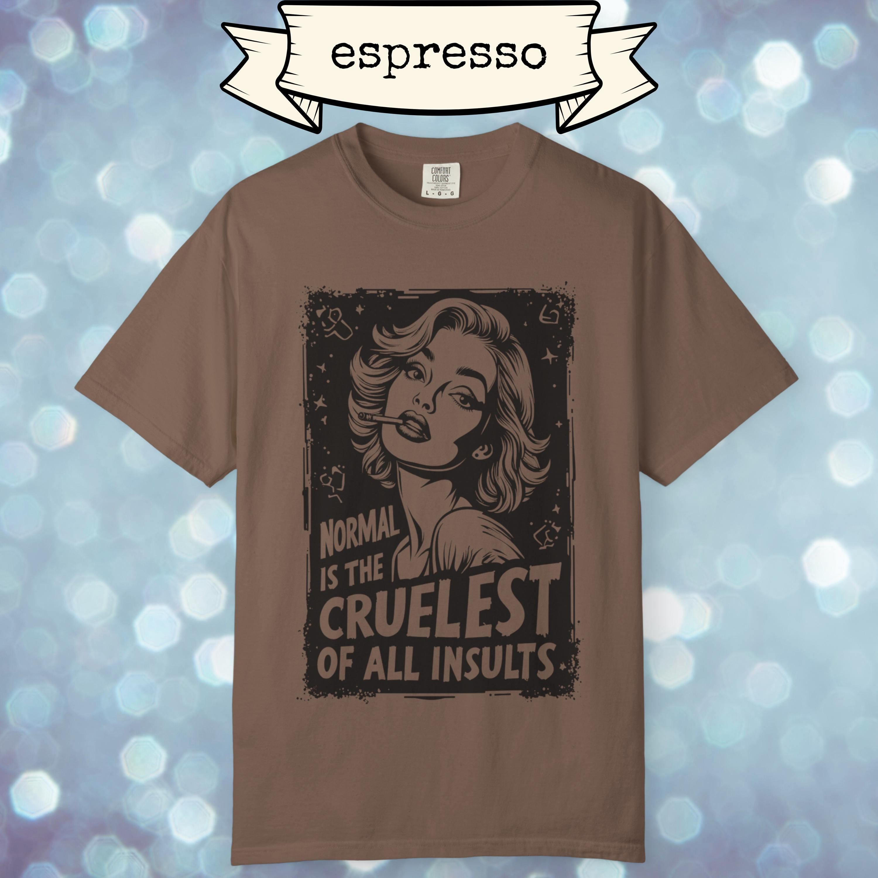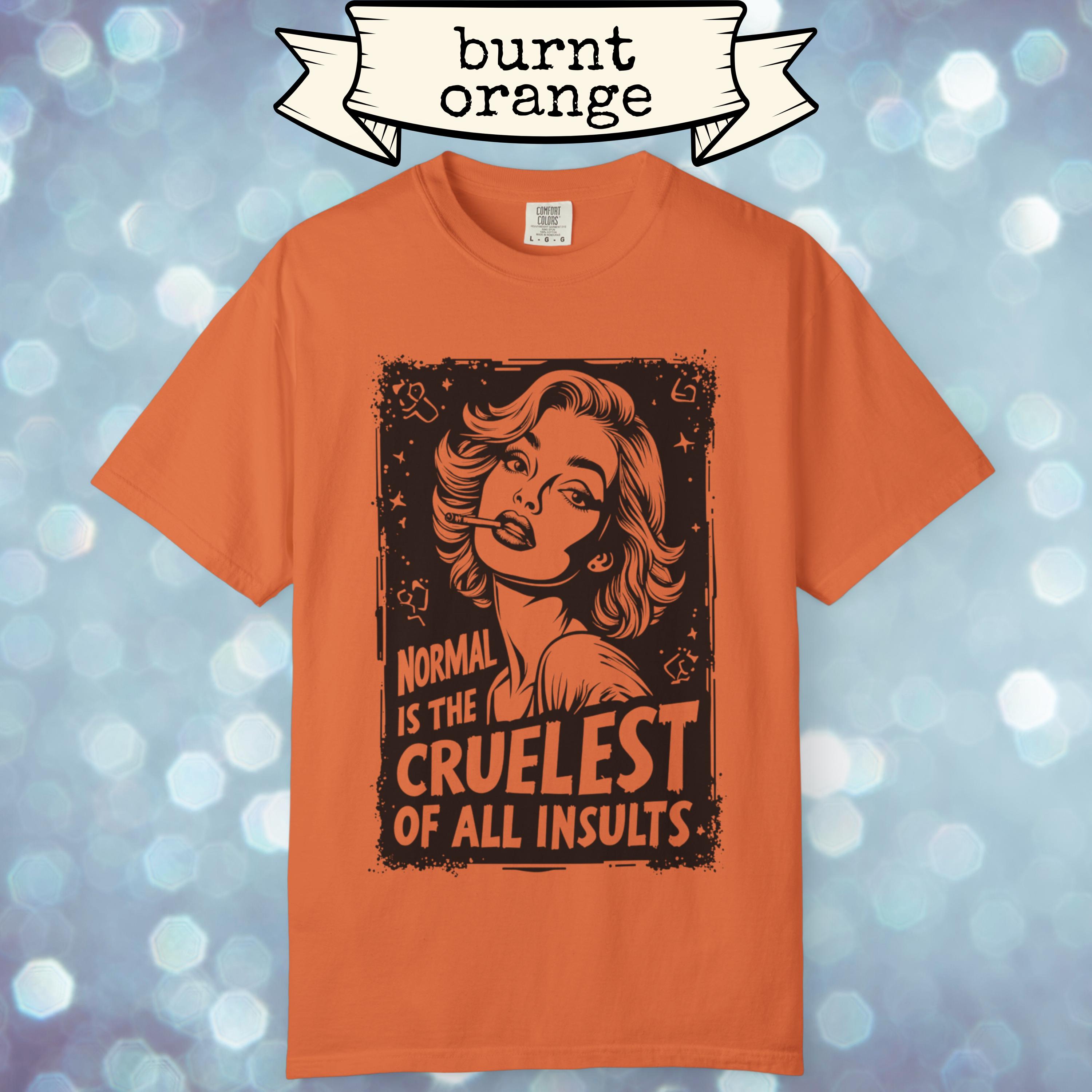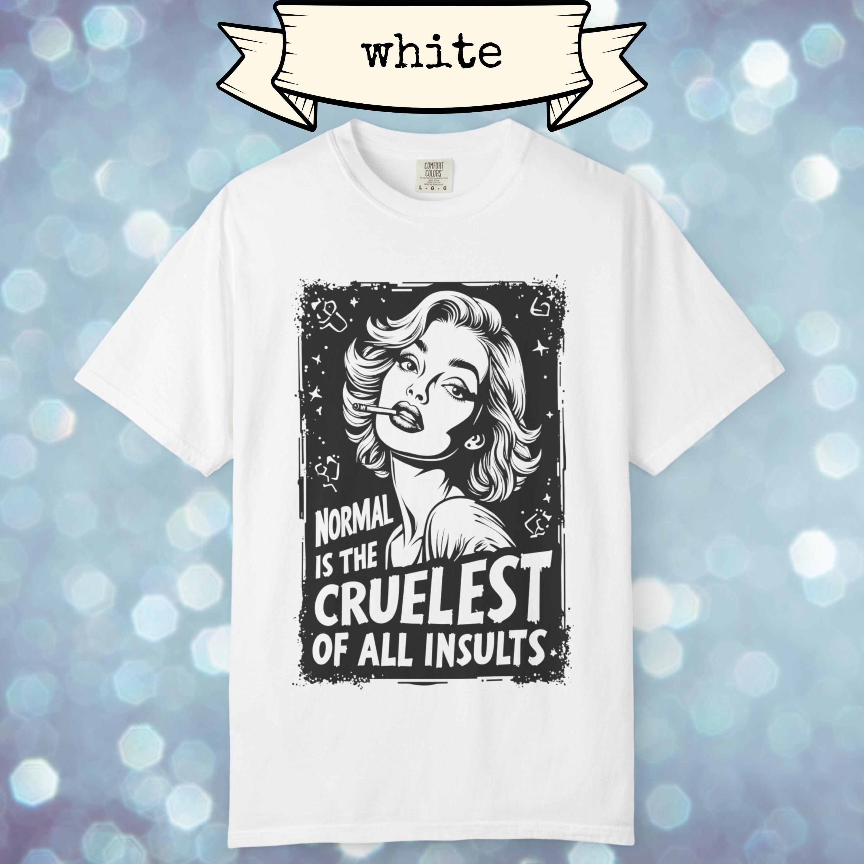 Ditch normalβembrace weird. This cruelest insult tee is a retro pop art shirt that throws shade at conformity in full comic style. The bold graphic and edgy quote say what everyone else is too polite (or boring) to admit. Perfect for alternative fashion fans, indie outsiders, and anyone allergic to bland. Makes a wicked gift for rebels, nonconformists, and friends who think βnormalβ is just code for βboring.β Grab this statement graphic for birthdays, back to school, or when you feel like poking at the status quo.