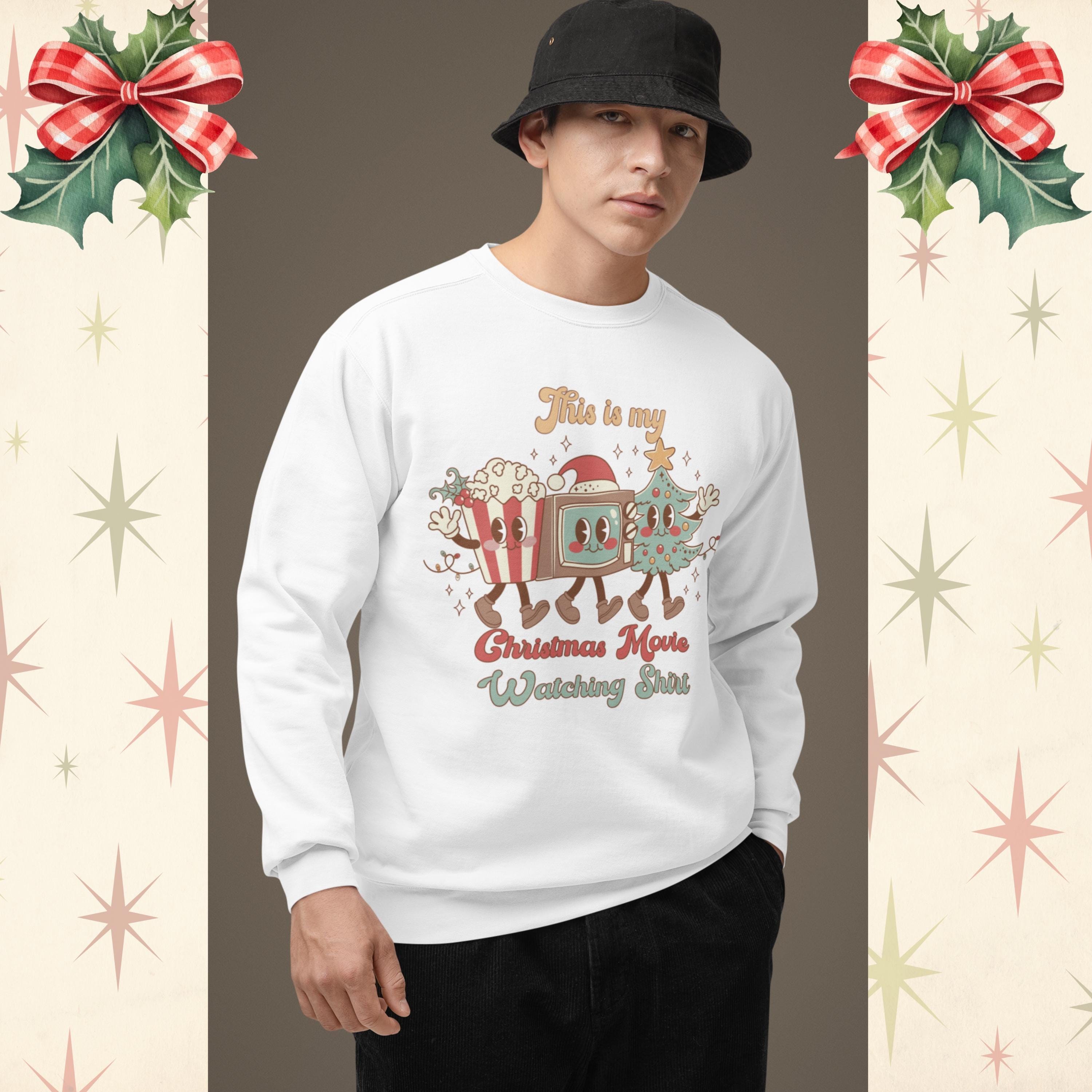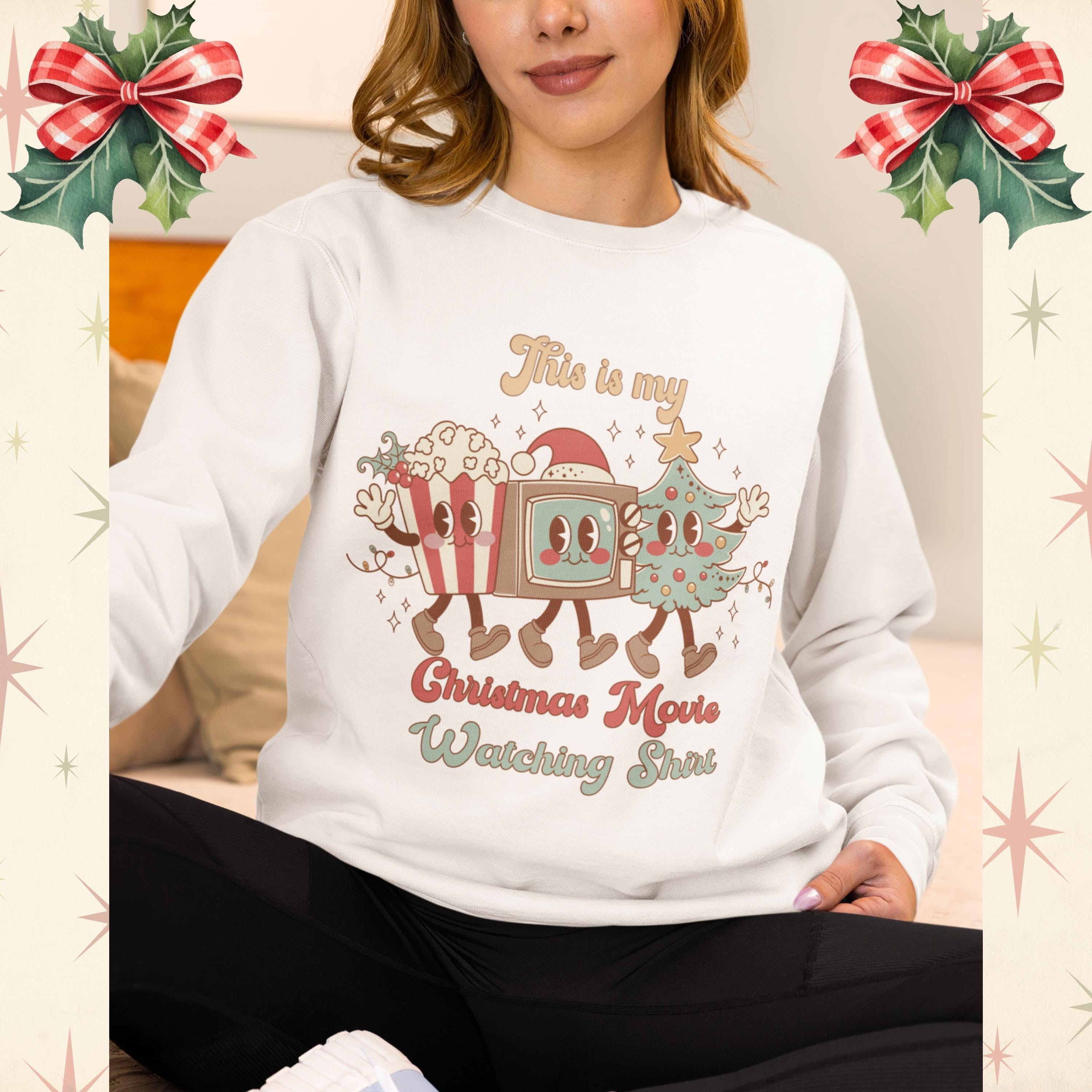 This Christmas Movie Watching Shirt is your cozy companion for every holiday film binge. Featuring an adorable retro-style popcorn, TV, and Christmas tree trio, itβs perfect for snuggling up with cocoa and your favorite seasonal classics. The vintage-inspired design makes it a fun nostalgic gift for anyone who loves holiday vibes, cozy nights, and festive cheer. Ideal for matching family outfits or cozy winter lounging.