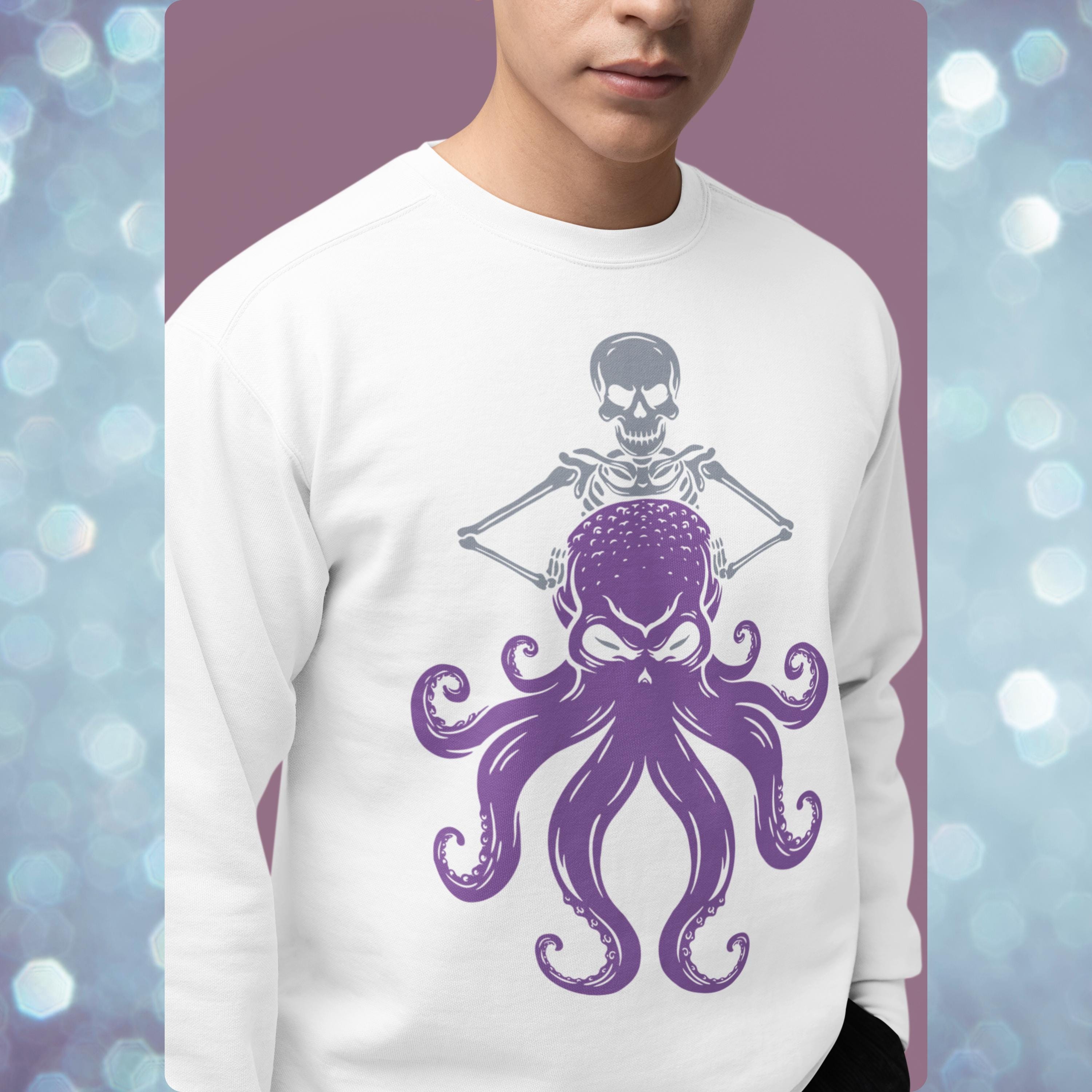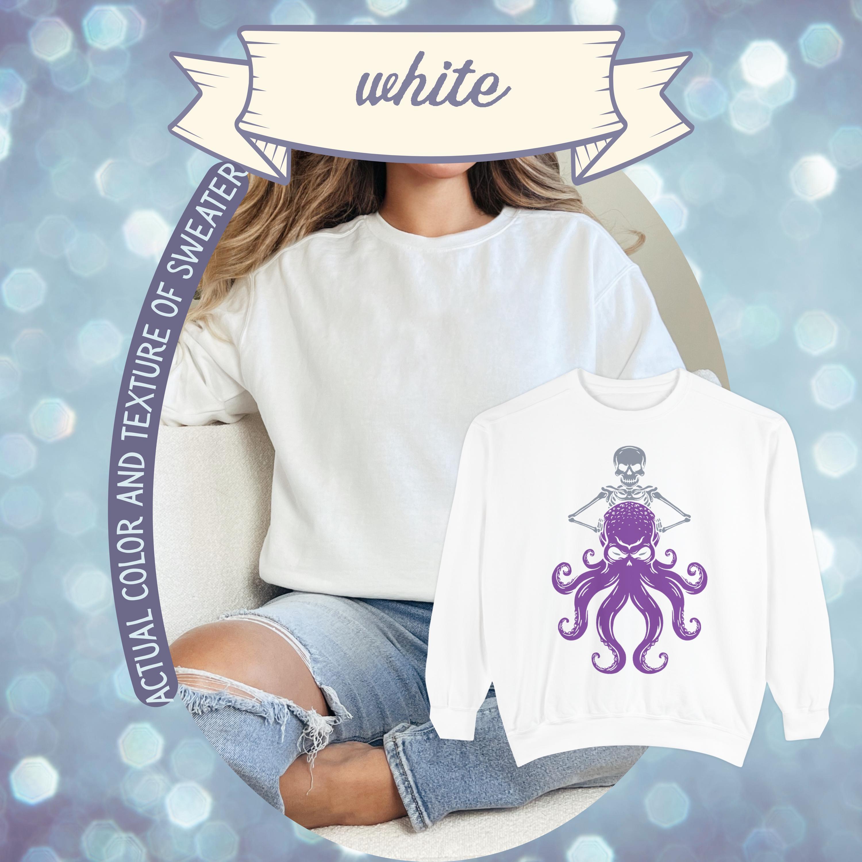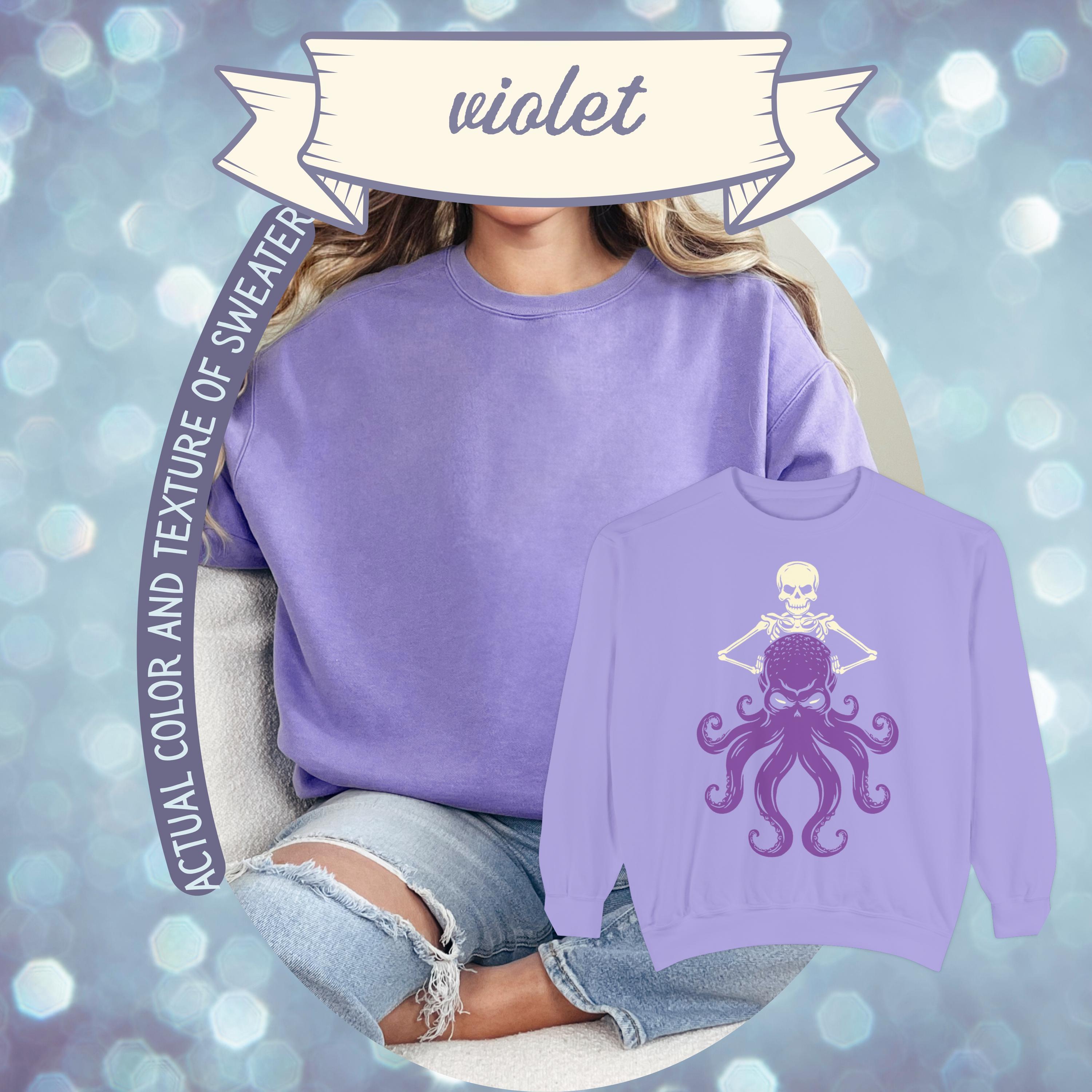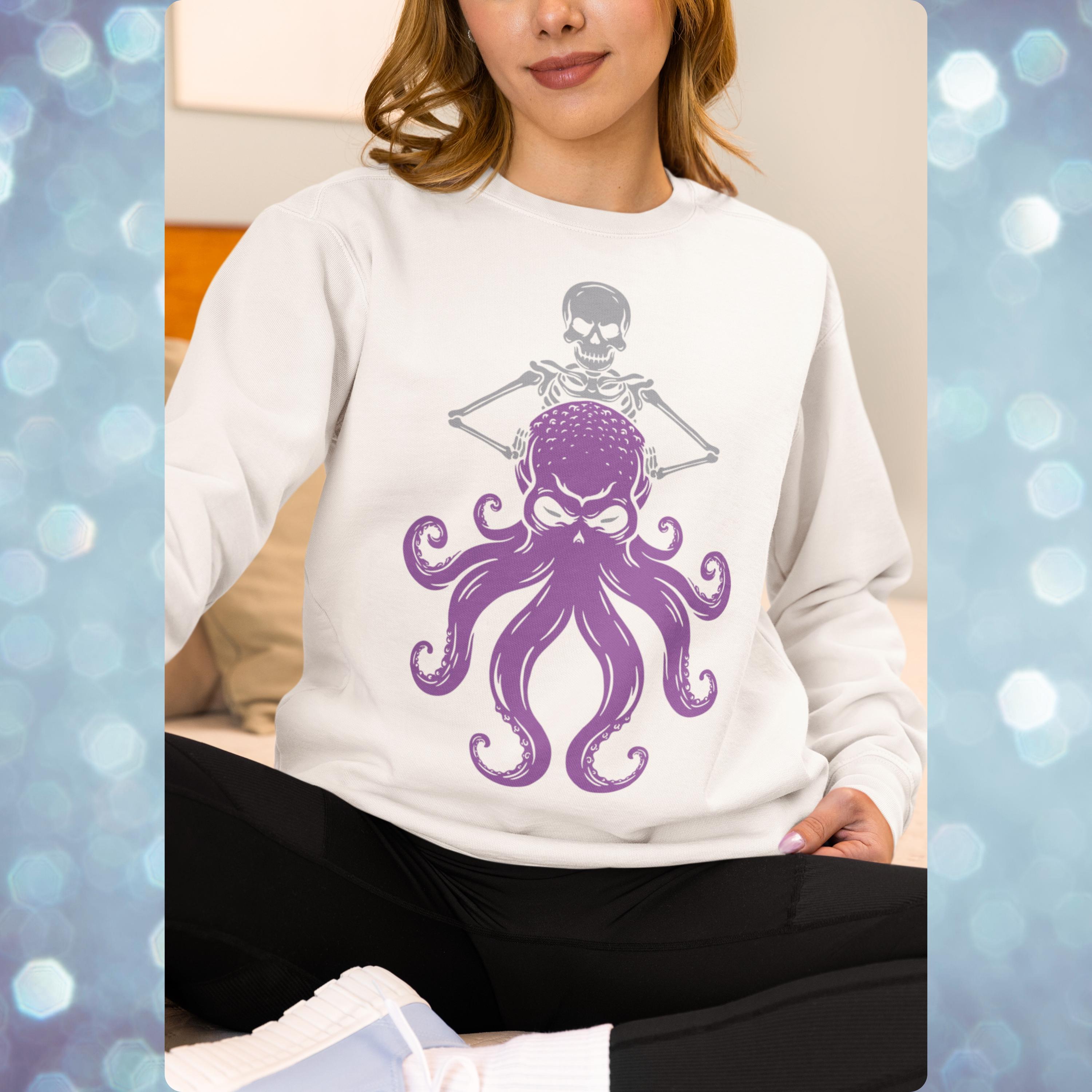 Purple Kraken Skull Sweatshirt blends gothic pirate vibes with ocean mythology for a bold, eerie style. This octopus design fuses skull and tentacles into one epic horror graphic pullover perfect for dark academia, Halloween vibes, or any grunge aesthetic. Crafted for premium comfort, this skull sweater makes a unique gift idea and a standout casual wear shirt. Tags: Kraken Skull, Octopus Design, Pirate Aesthetic, Horror Graphic, Dark Academia, Ocean Mythology, Purple Kraken.