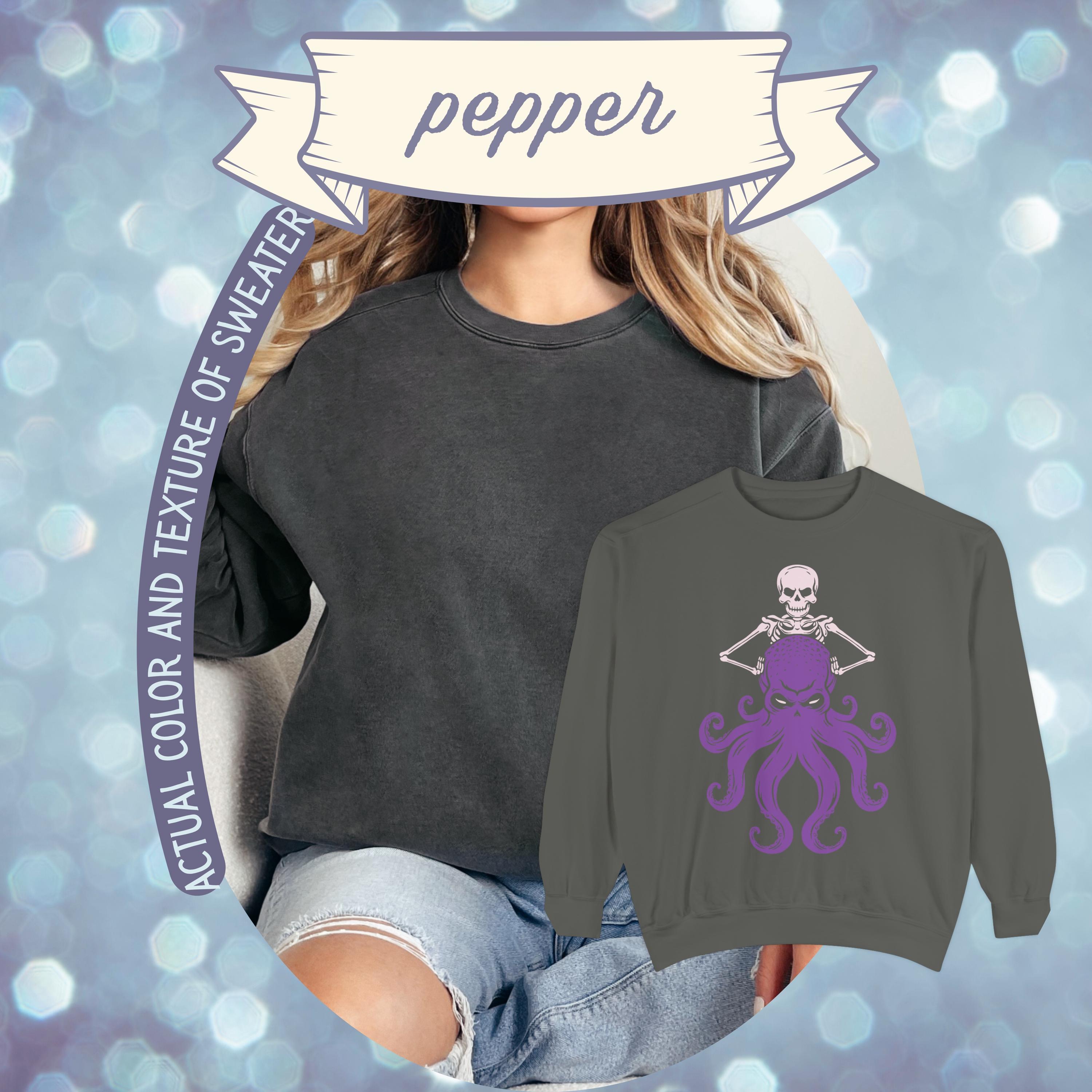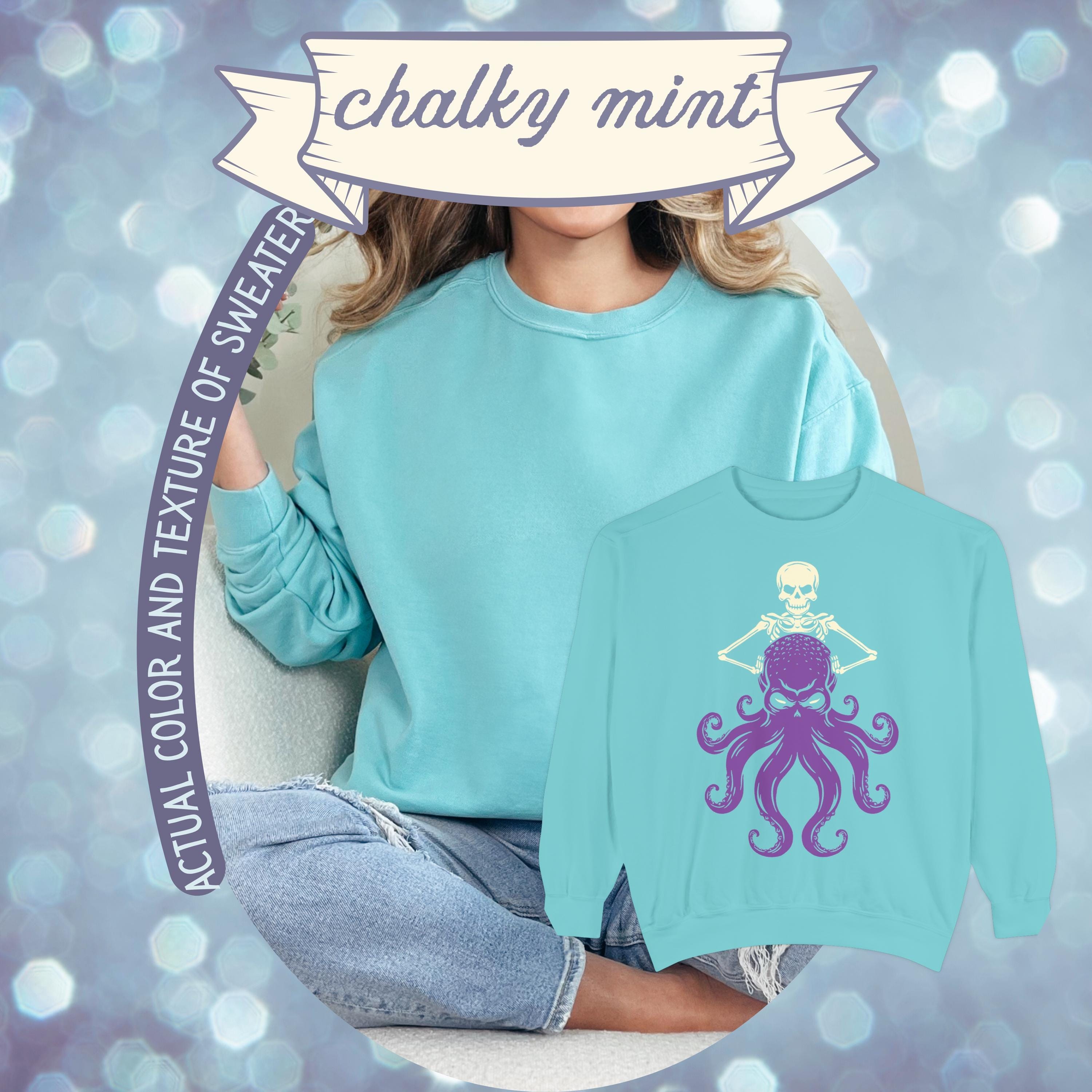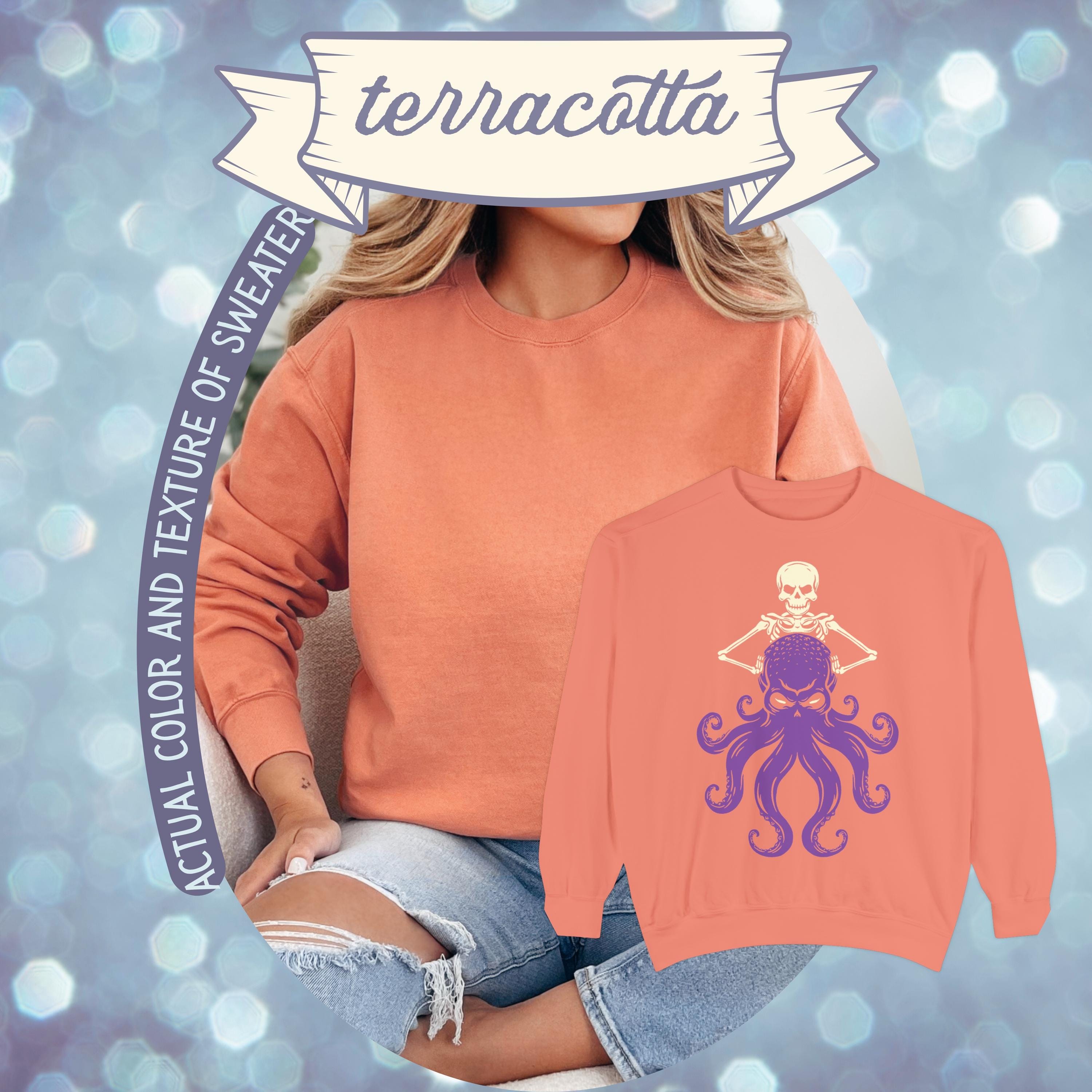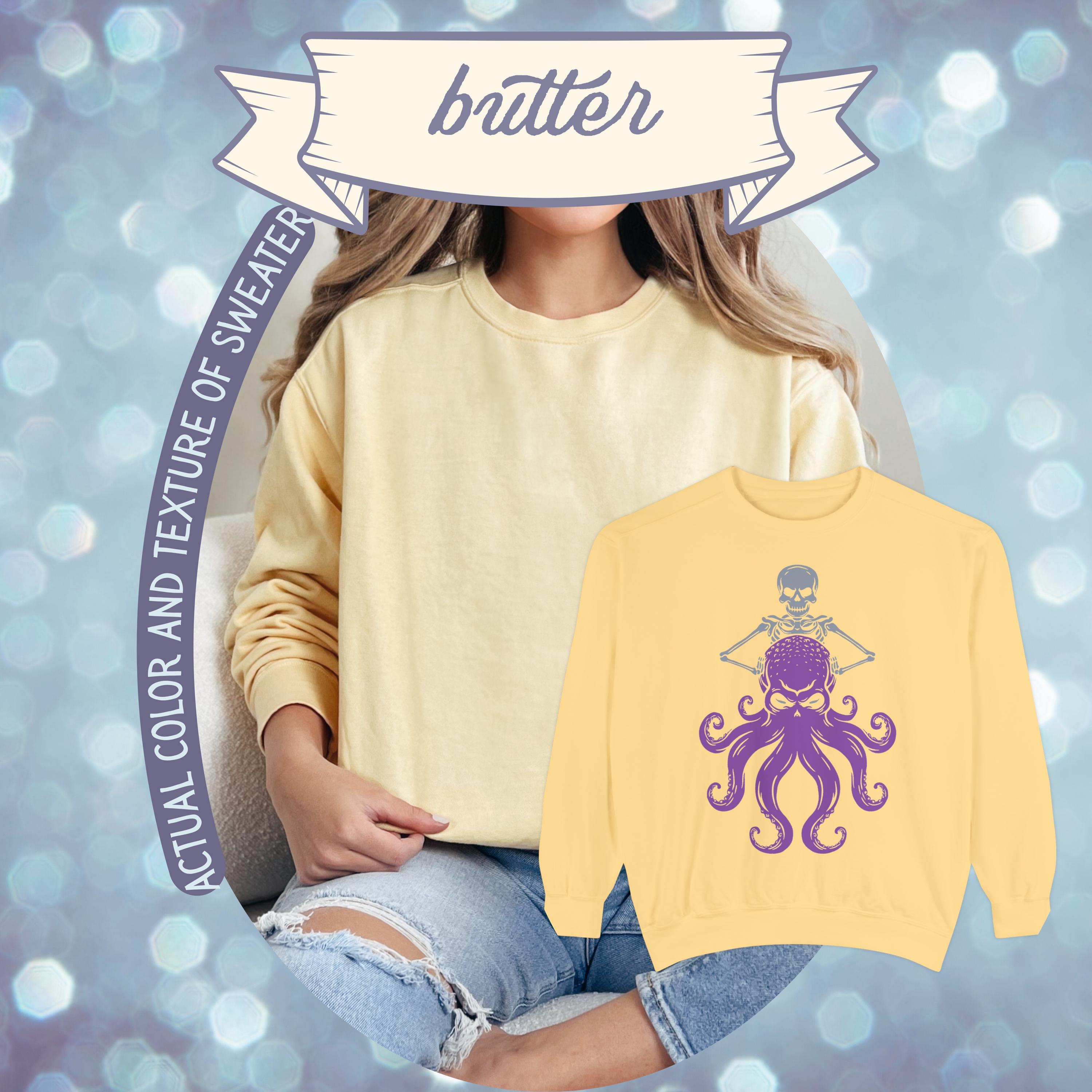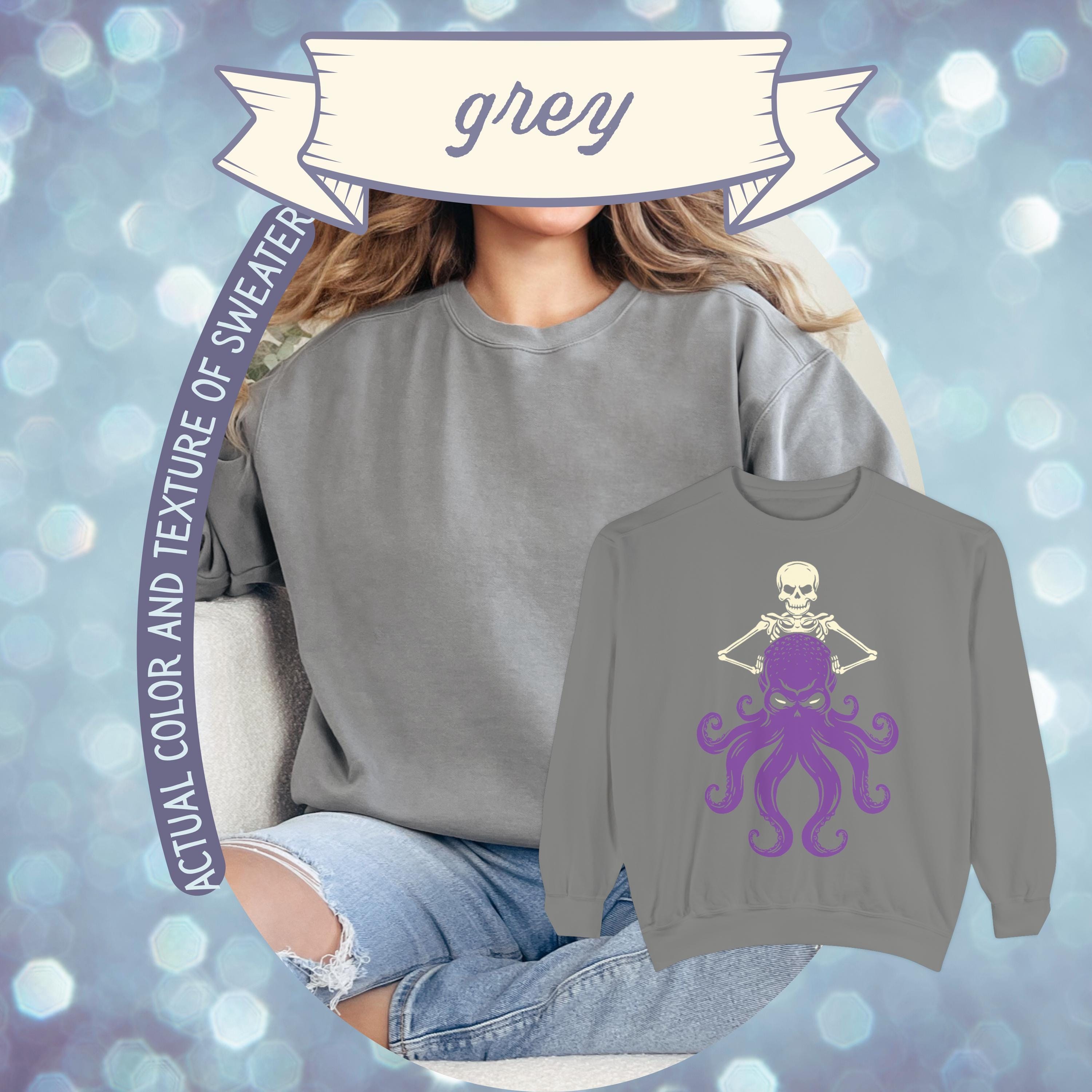 Purple Kraken Skull Sweatshirt blends gothic pirate vibes with ocean mythology for a bold, eerie style. This octopus design fuses skull and tentacles into one epic horror graphic pullover perfect for dark academia, Halloween vibes, or any grunge aesthetic. Crafted for premium comfort, this skull sweater makes a unique gift idea and a standout casual wear shirt. Tags: Kraken Skull, Octopus Design, Pirate Aesthetic, Horror Graphic, Dark Academia, Ocean Mythology, Purple Kraken.