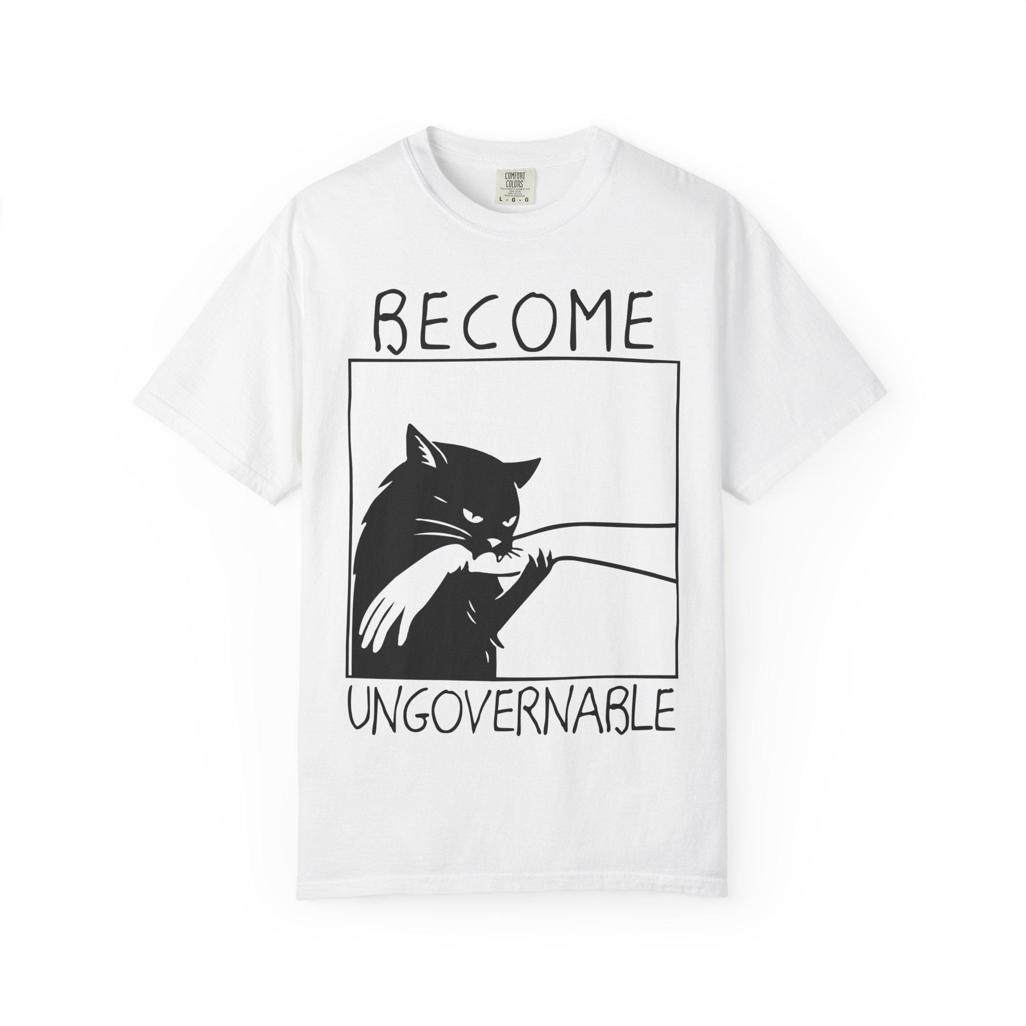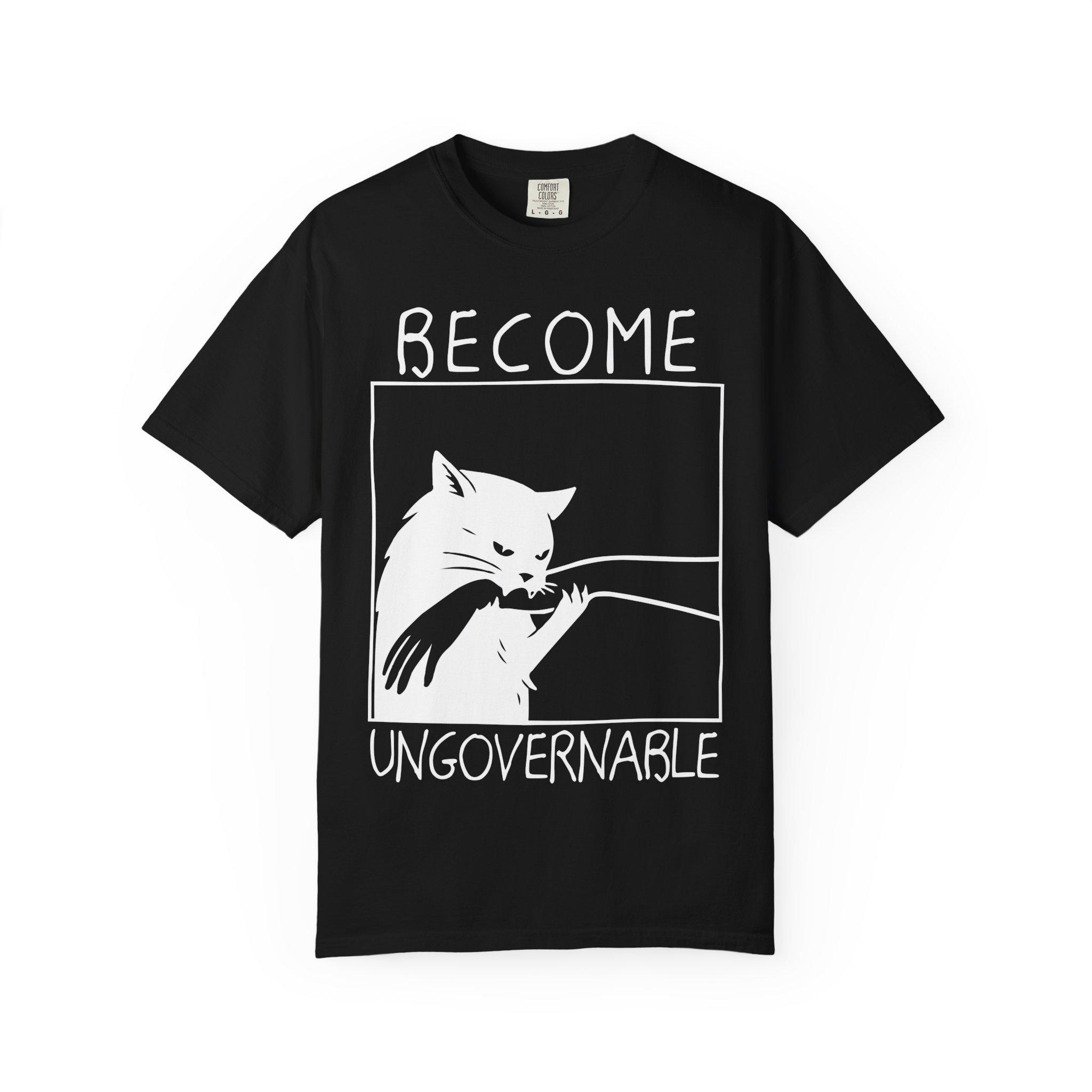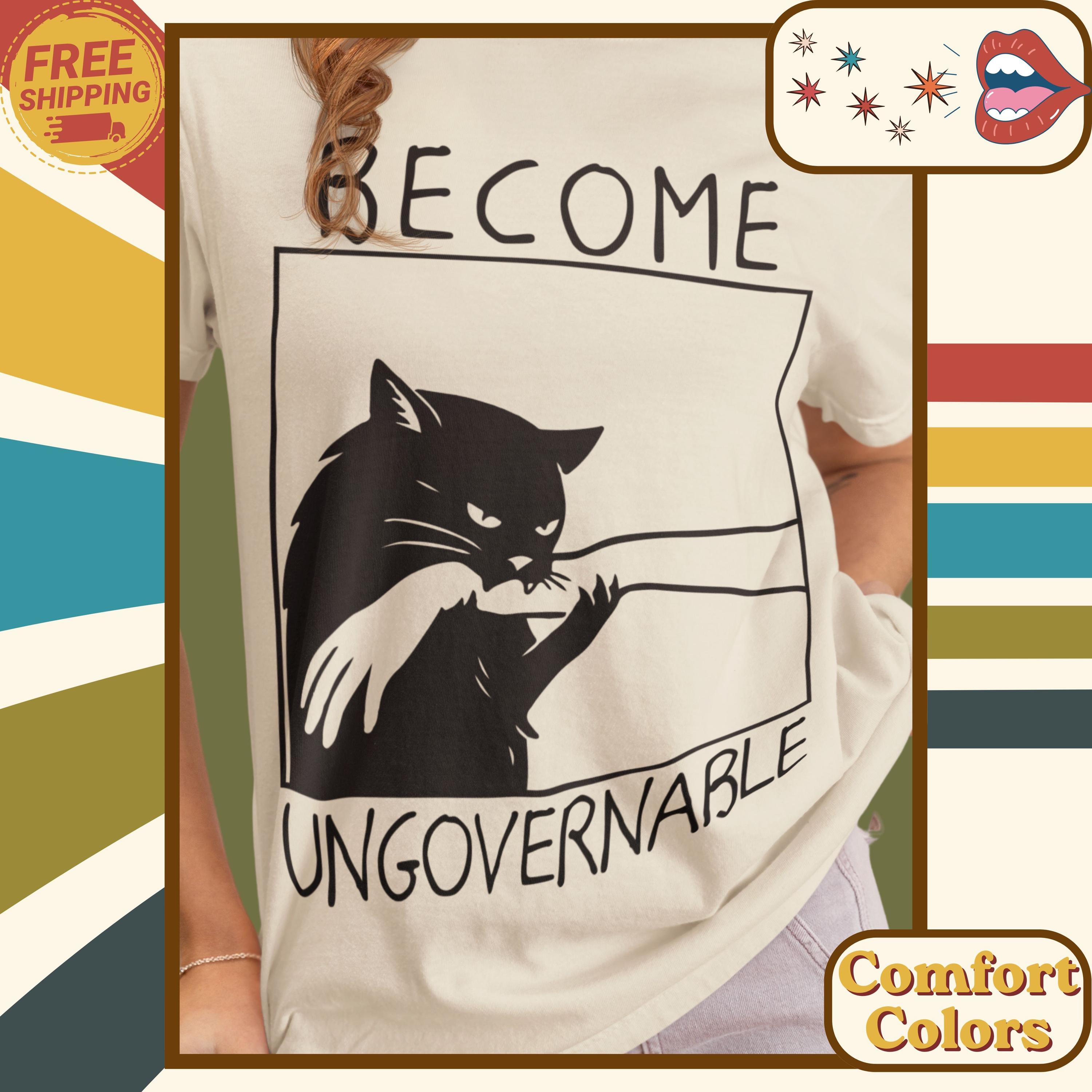 Become Ungovernable gothic cat shirt with black cat graphic and alternative aesthetic style. This edgy grunge graphic tee blends dark humor with rebellious energy for goth, emo, and alt streetwear lovers. Featuring a sarcastic biting cat design, this punk inspired shirt is perfect for anti social moods, witchy vibes, and anyone who prefers chaos over control. Soft casual wear shirt ideal for everyday outfits, concerts, or making a statement without saying a word.