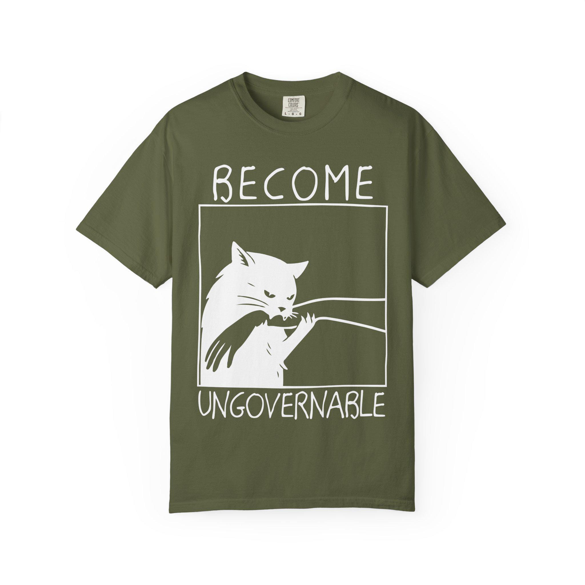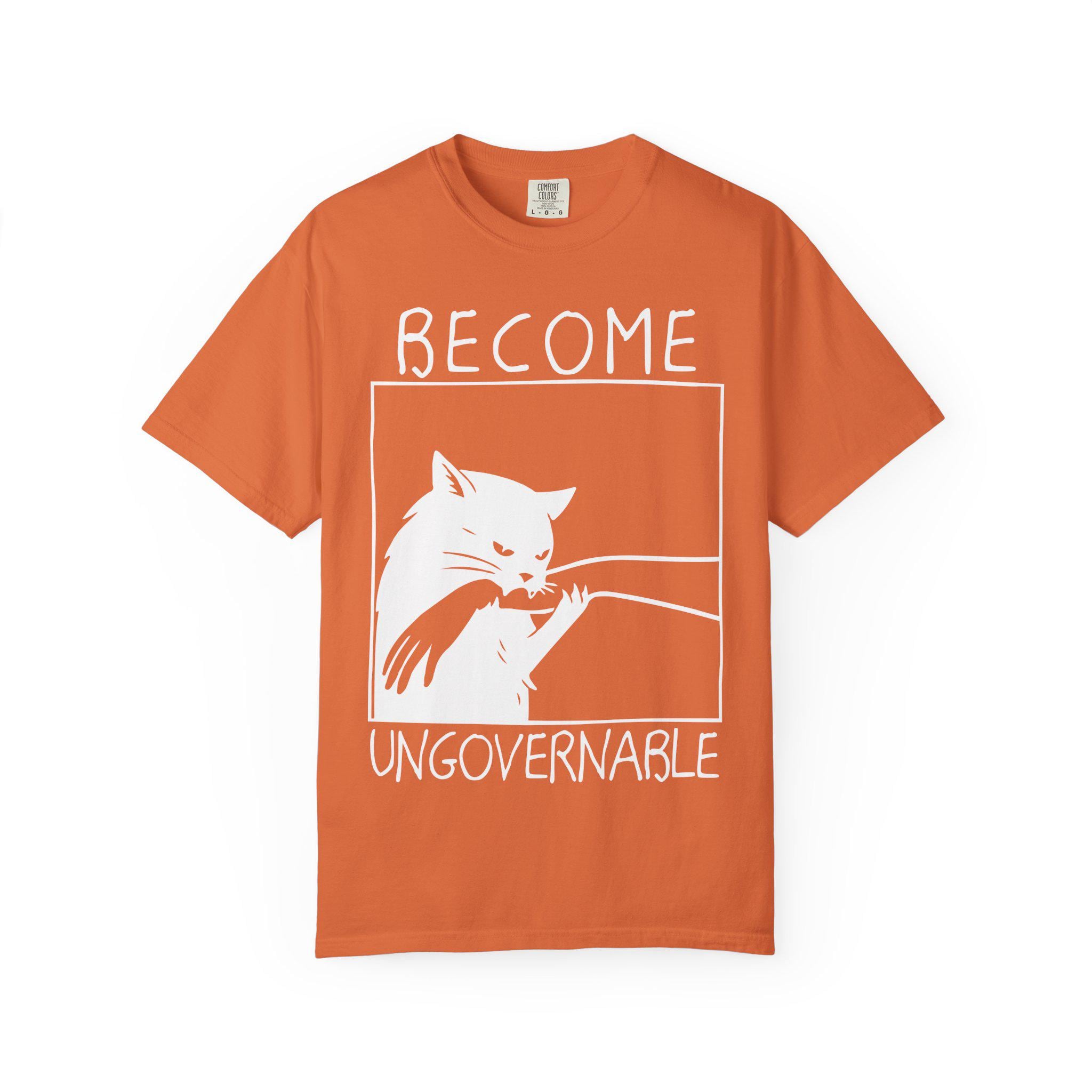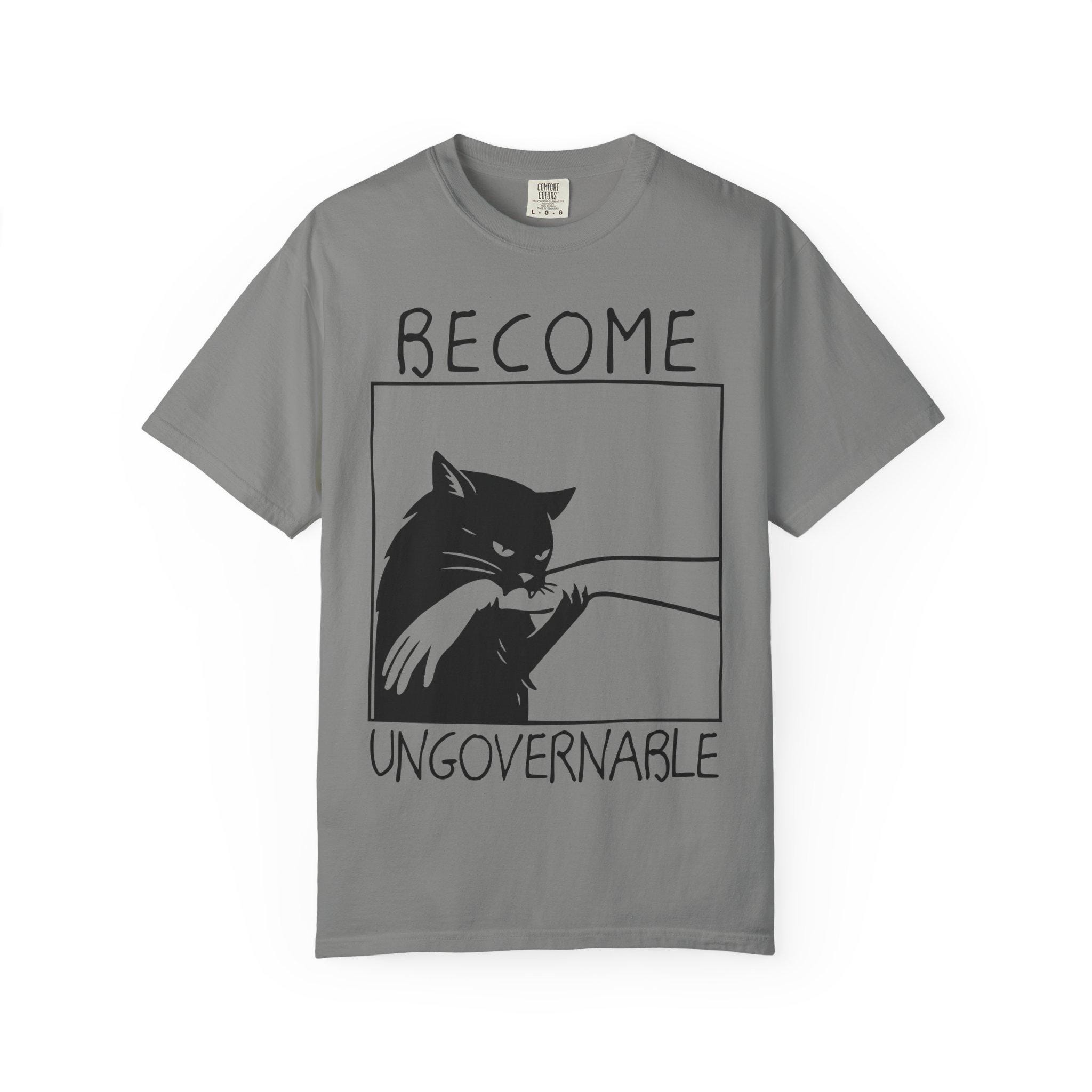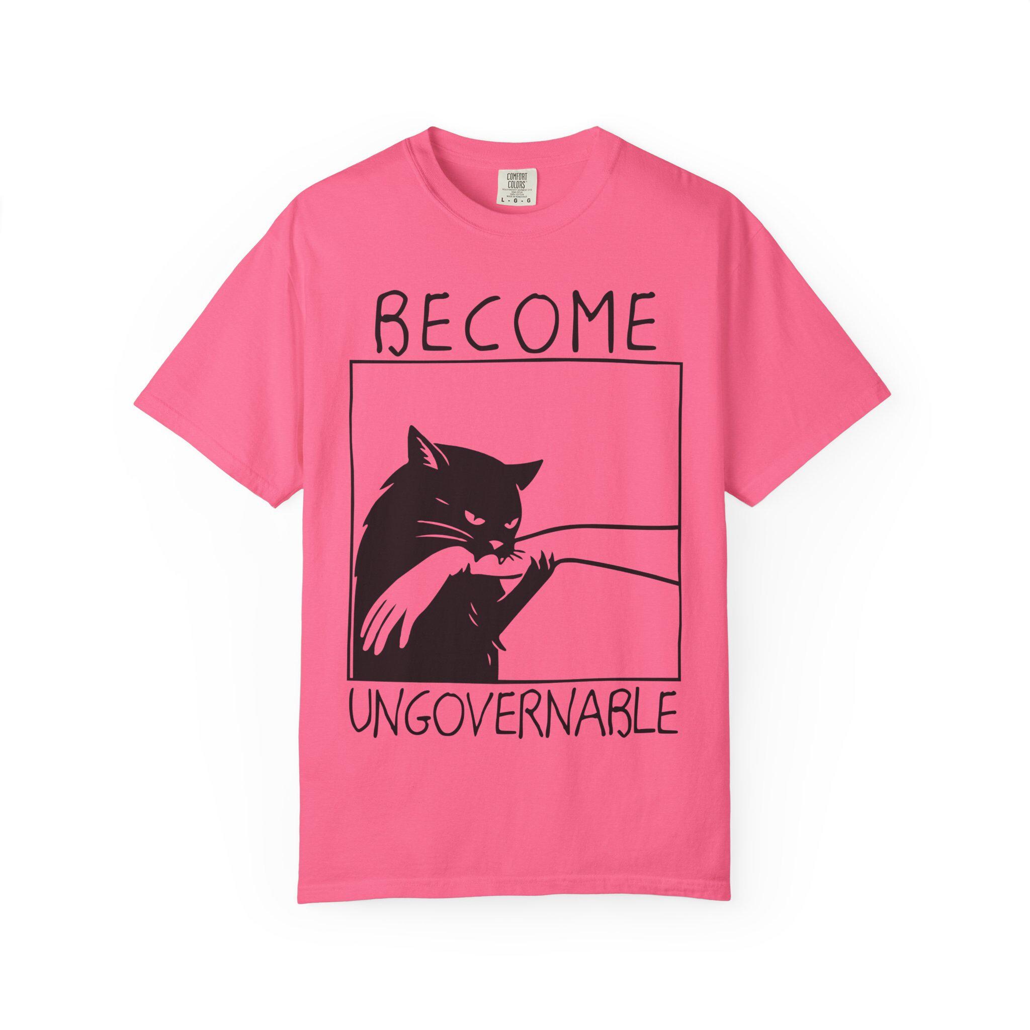 Become Ungovernable gothic cat shirt with black cat graphic and alternative aesthetic style. This edgy grunge graphic tee blends dark humor with rebellious energy for goth, emo, and alt streetwear lovers. Featuring a sarcastic biting cat design, this punk inspired shirt is perfect for anti social moods, witchy vibes, and anyone who prefers chaos over control. Soft casual wear shirt ideal for everyday outfits, concerts, or making a statement without saying a word.