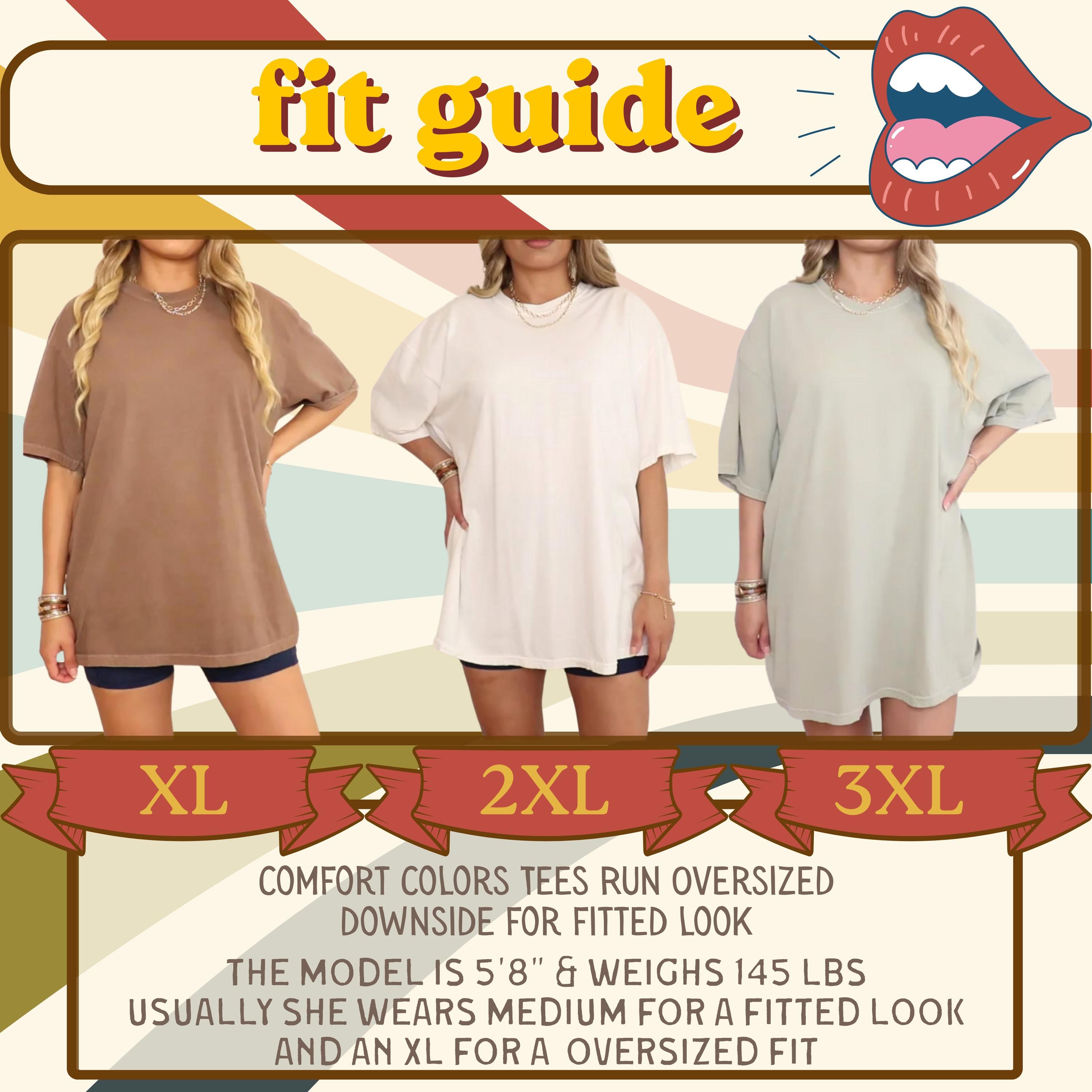 ๐Our tees are designed to fit true to size. We provide a detailed size chart for each productโsimply click on the "Size Guide" in the product description to find your perfect fit. If you're between sizes or prefer a looser fit, we recommend sizing up 2 sizes for that over-sized baggy fit.