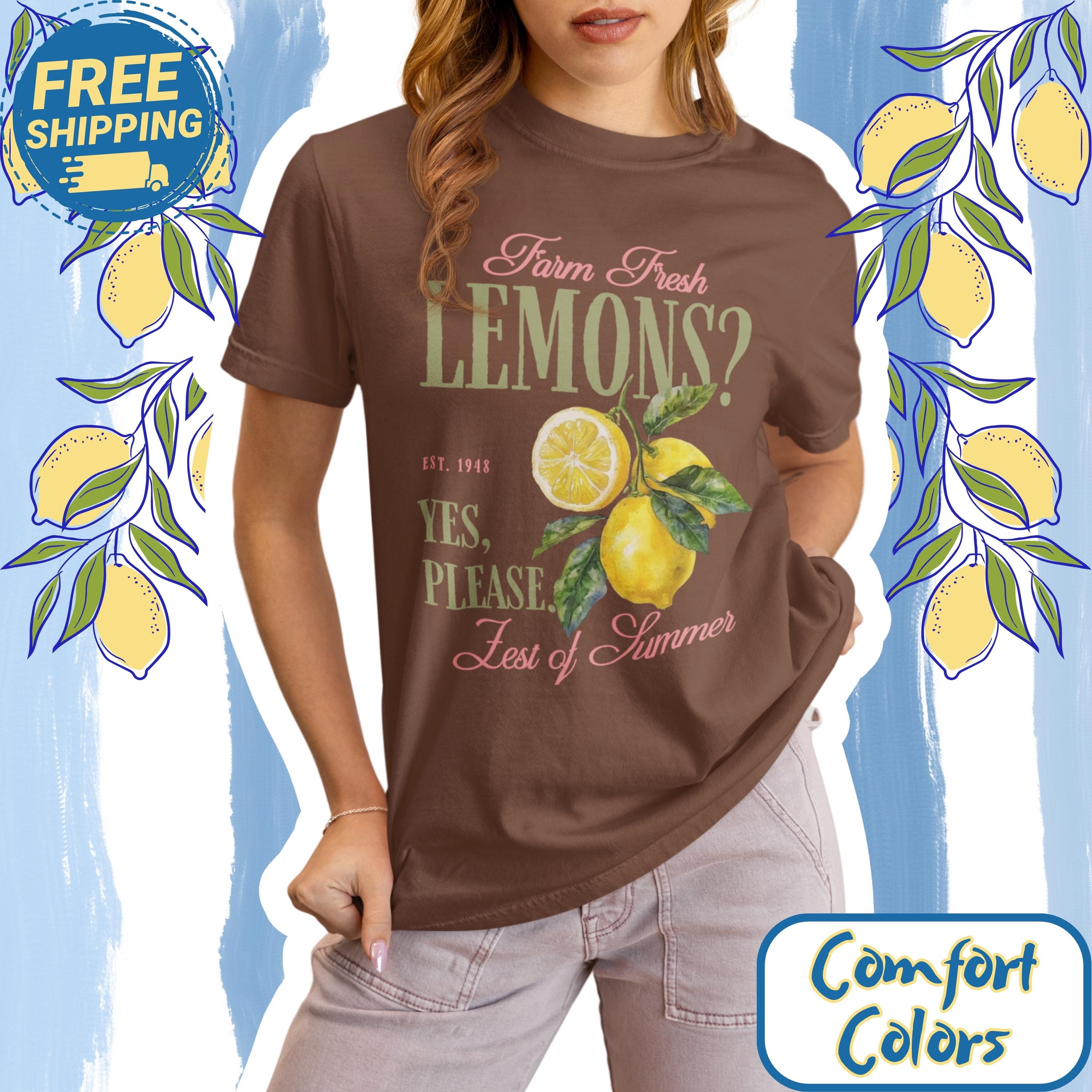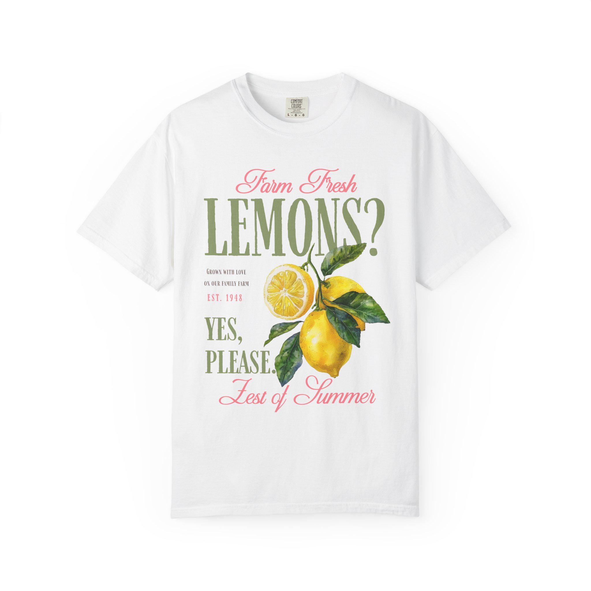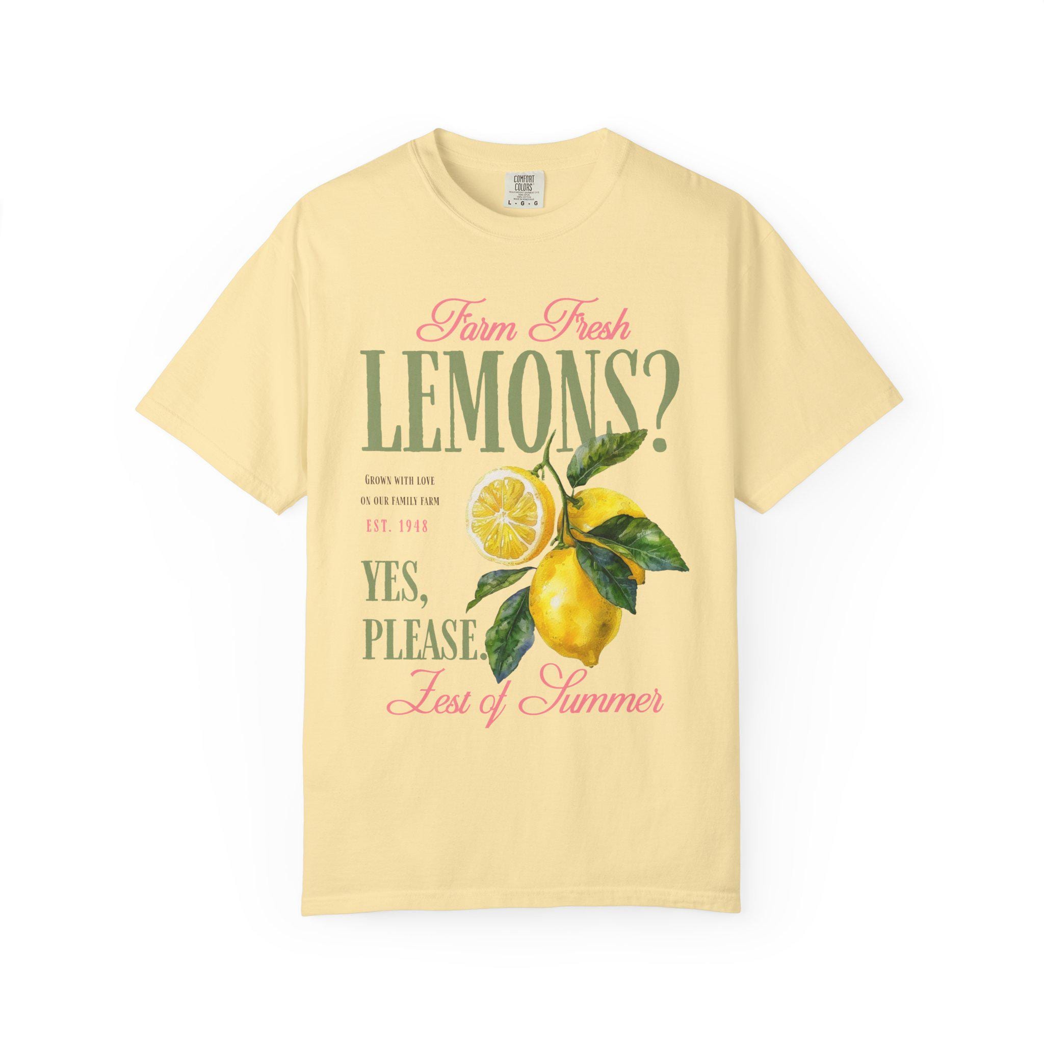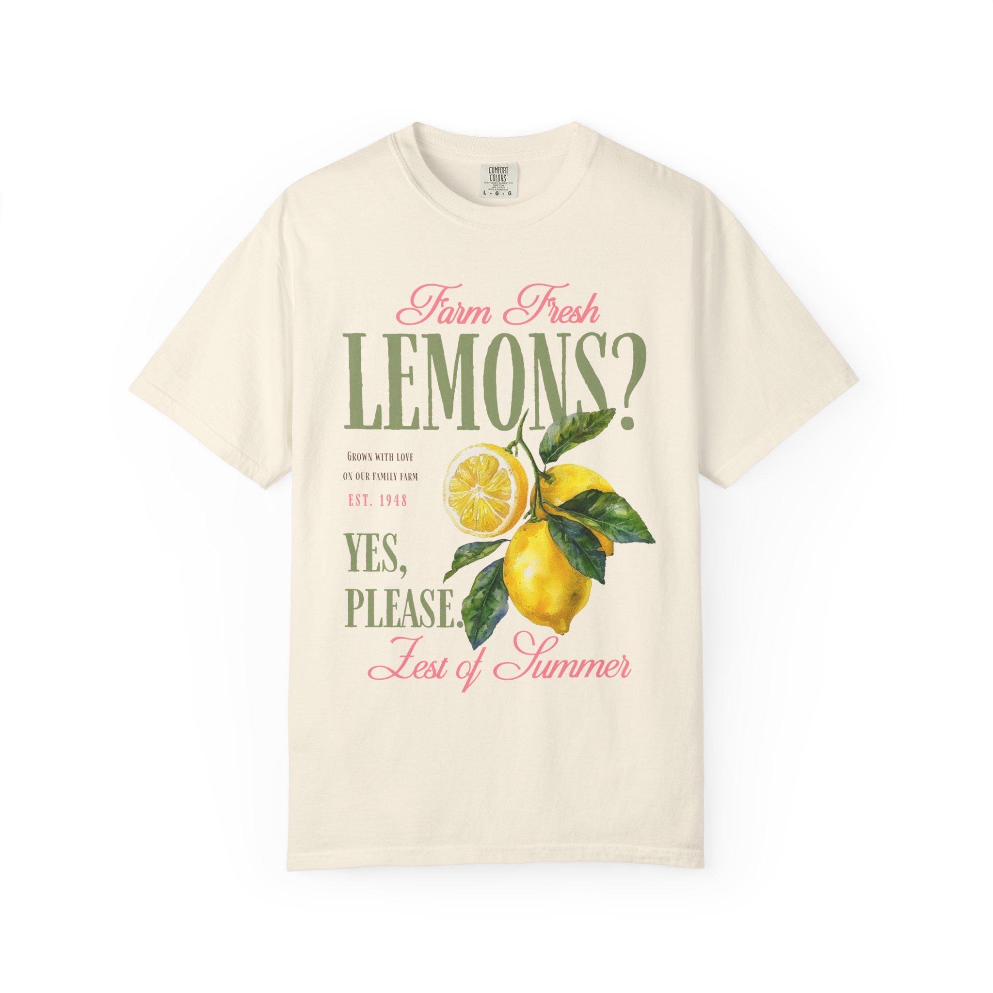 Farm fresh lemons shirt with retro citrus aesthetic and vintage fruit graphic design perfect for summer outfits and farmers market style. This lemon graphic tee brings bright citrus vibes with a nostalgic farmhouse feel and bold retro typography. Ideal for summer lovers, citrus fans, beach days, vacation outfits, and fresh produce aesthetic looks with a playful yes please statement.