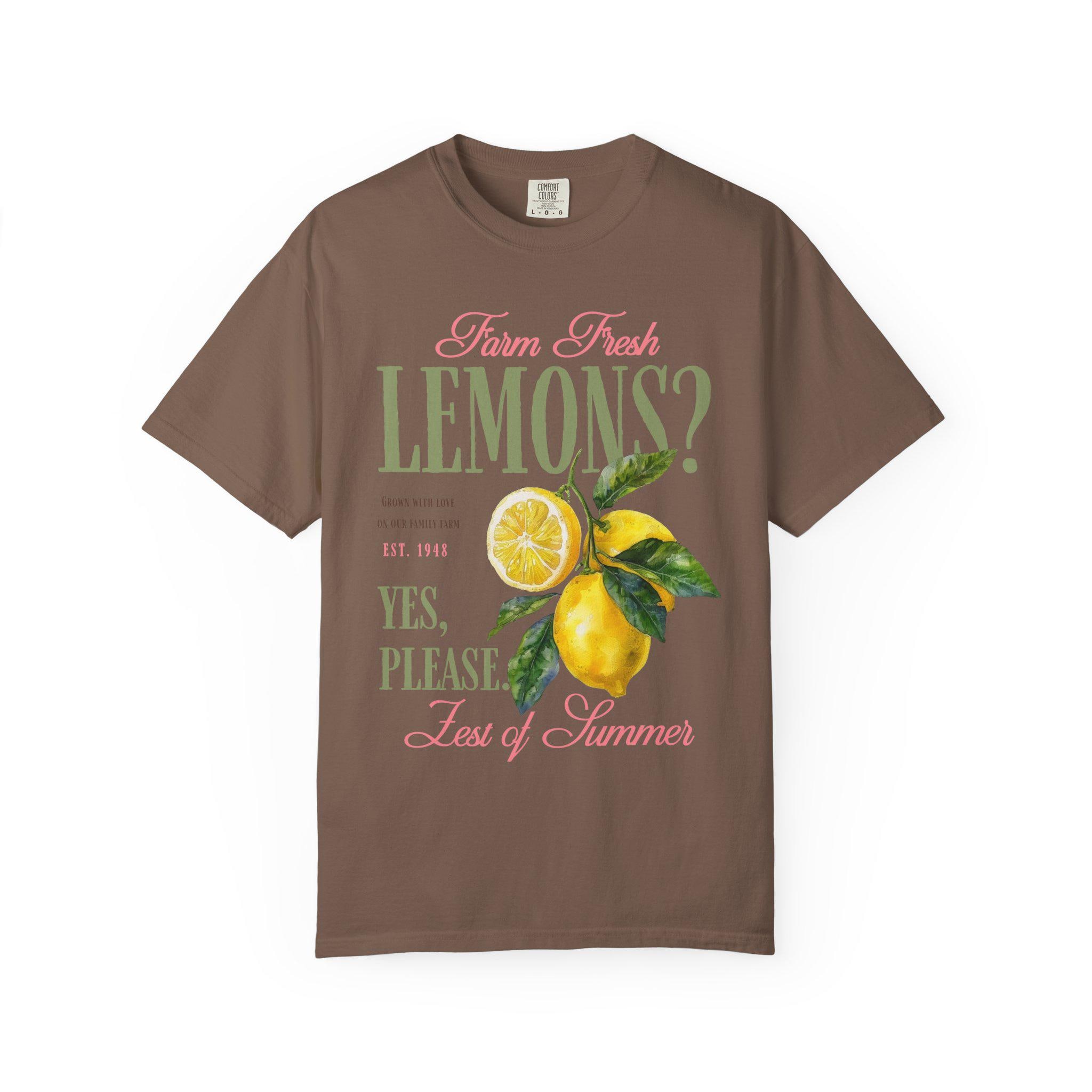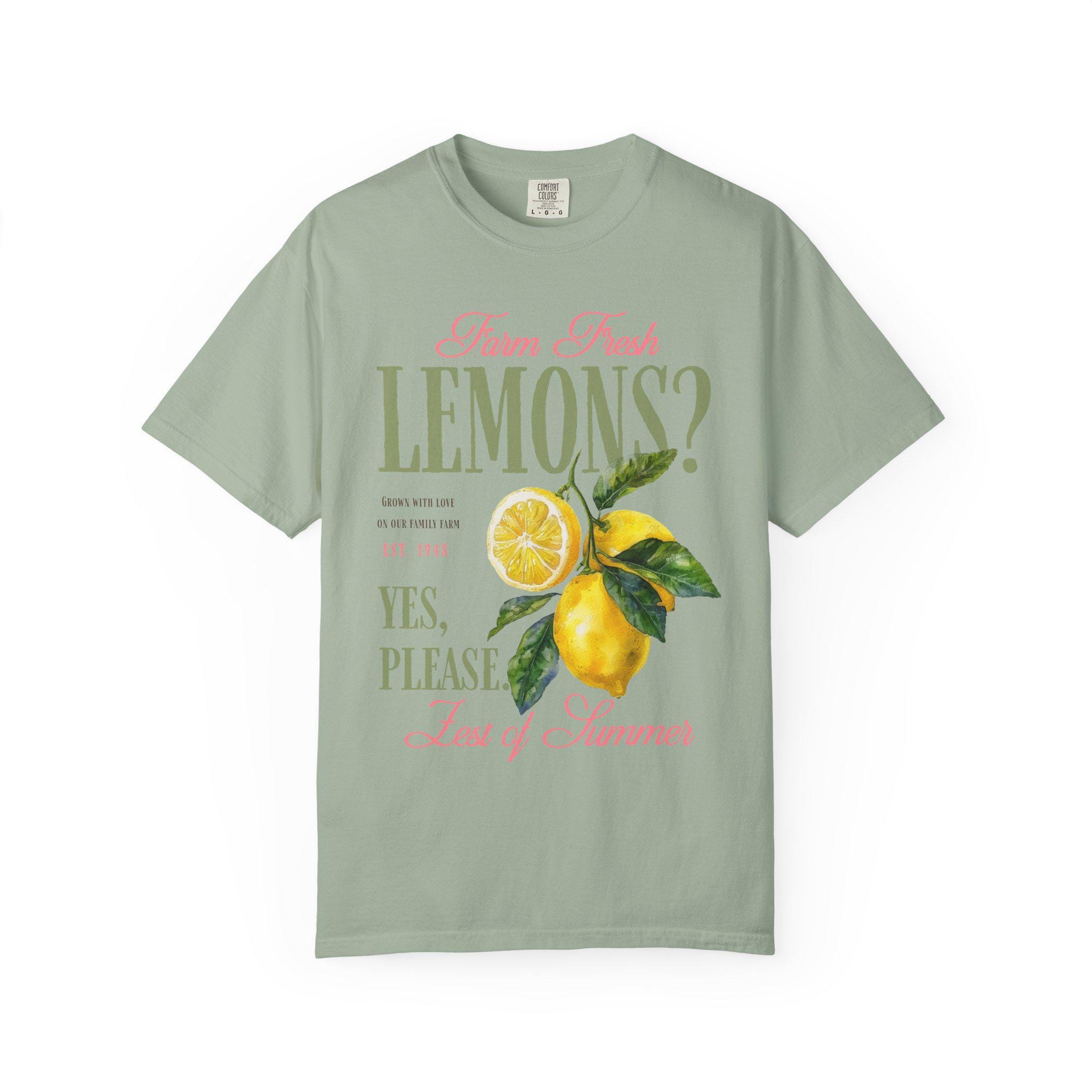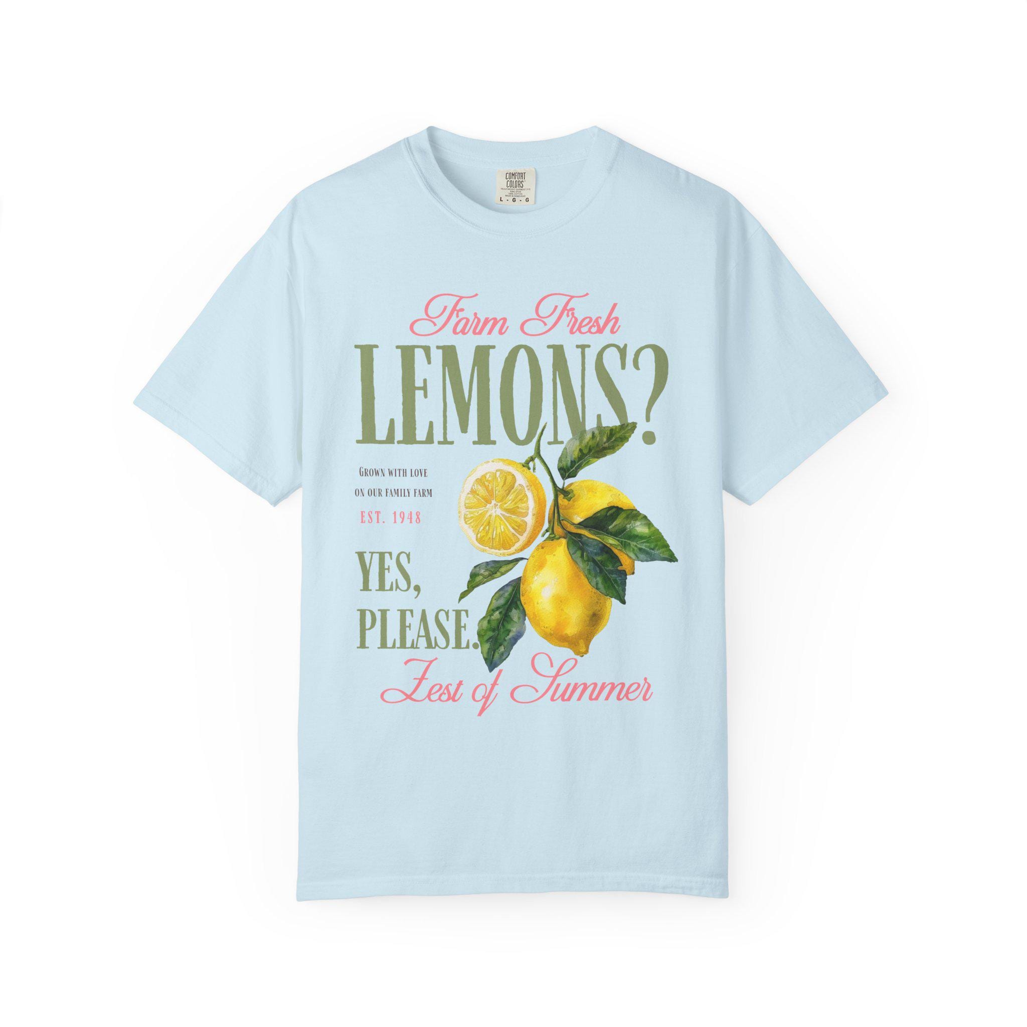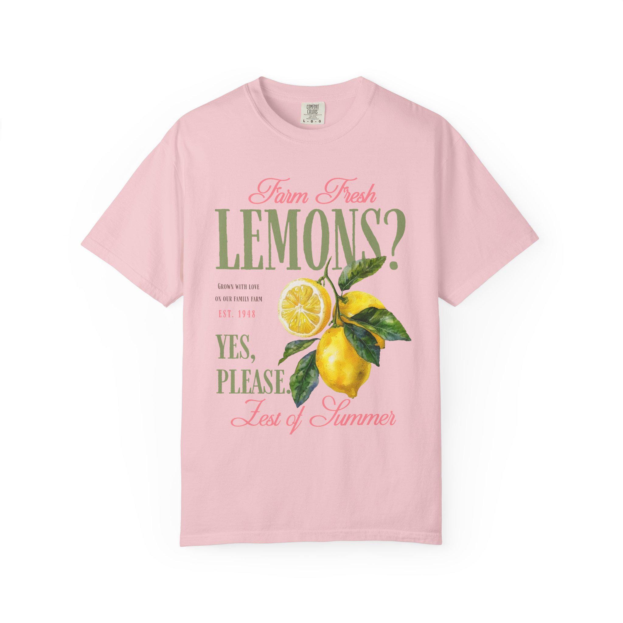 Farm fresh lemons shirt with retro citrus aesthetic and vintage fruit graphic design perfect for summer outfits and farmers market style. This lemon graphic tee brings bright citrus vibes with a nostalgic farmhouse feel and bold retro typography. Ideal for summer lovers, citrus fans, beach days, vacation outfits, and fresh produce aesthetic looks with a playful yes please statement.